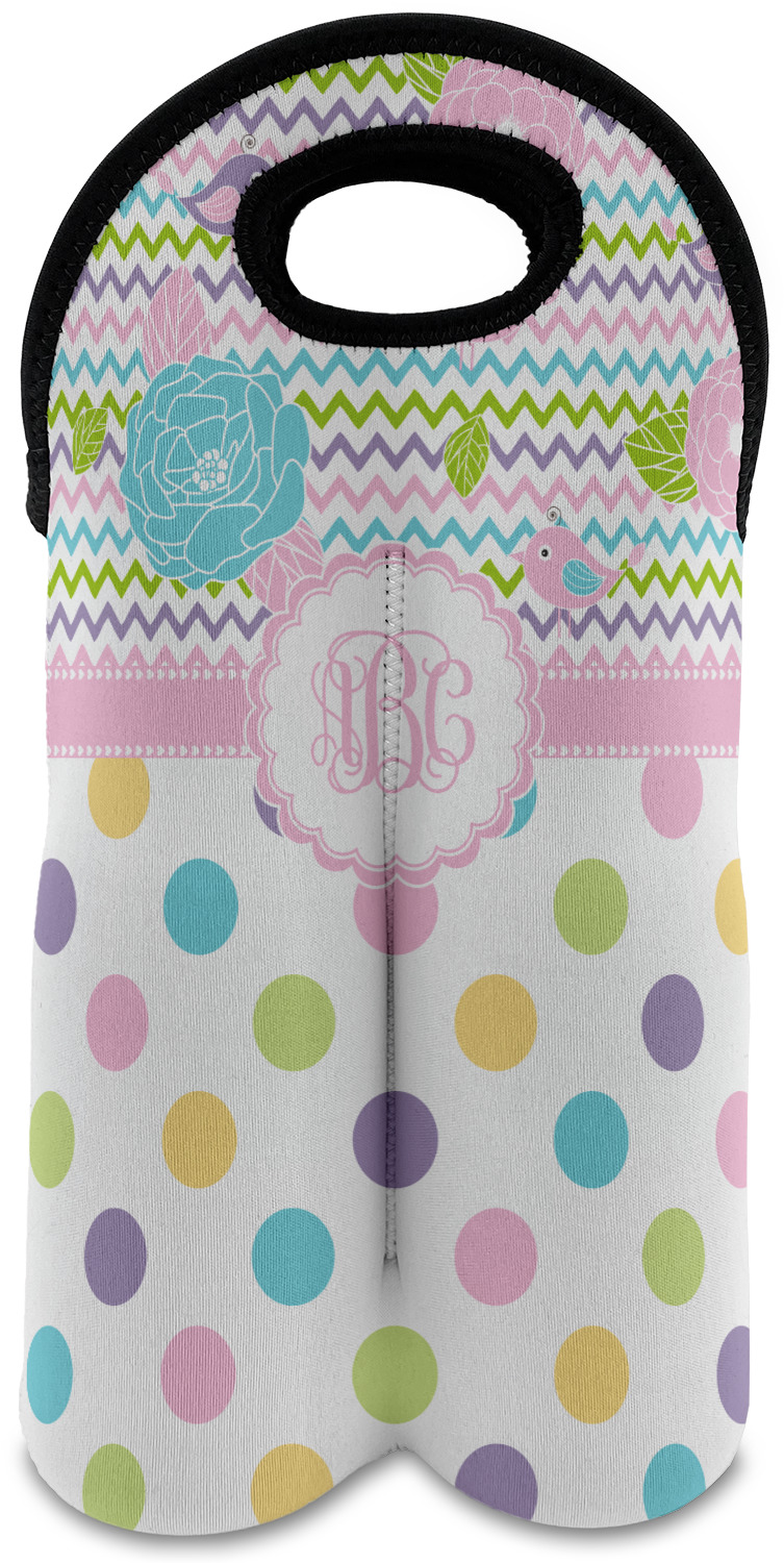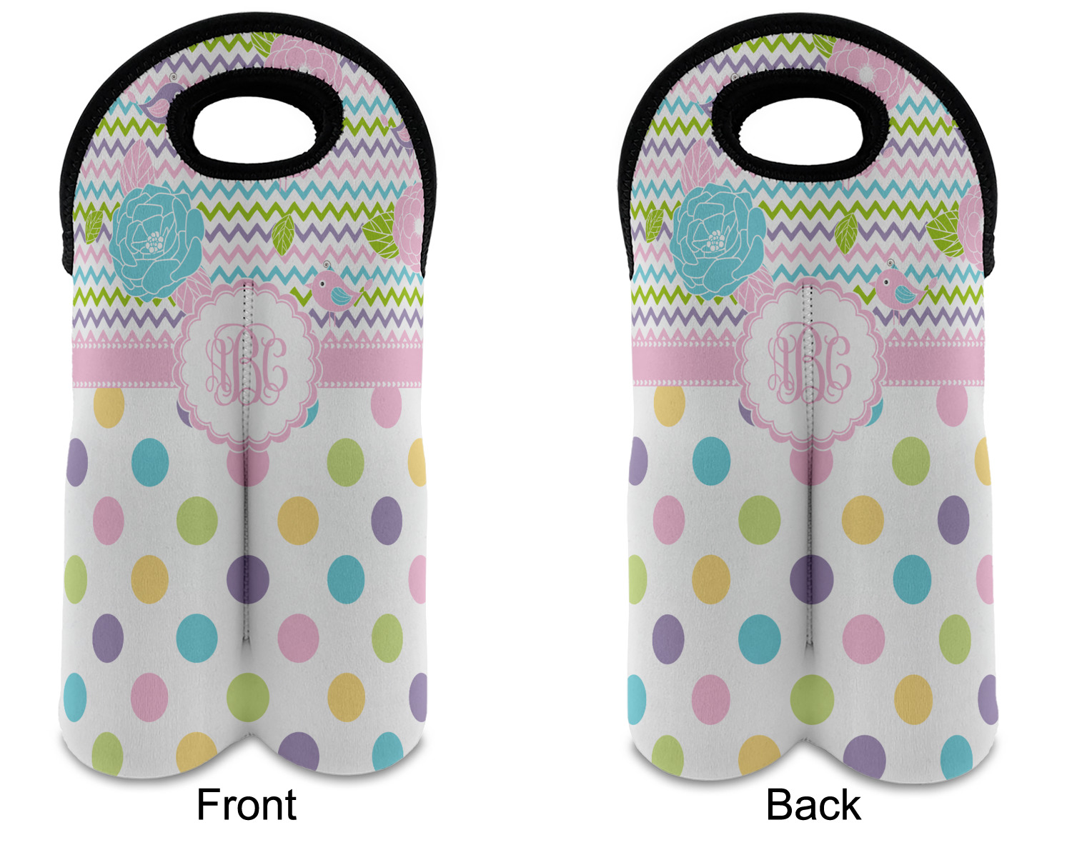 These tote bags are insulated to keep the bottles cold and have a stitched separation down the middle and double handles to keep the two bottles safe and secure during travels.