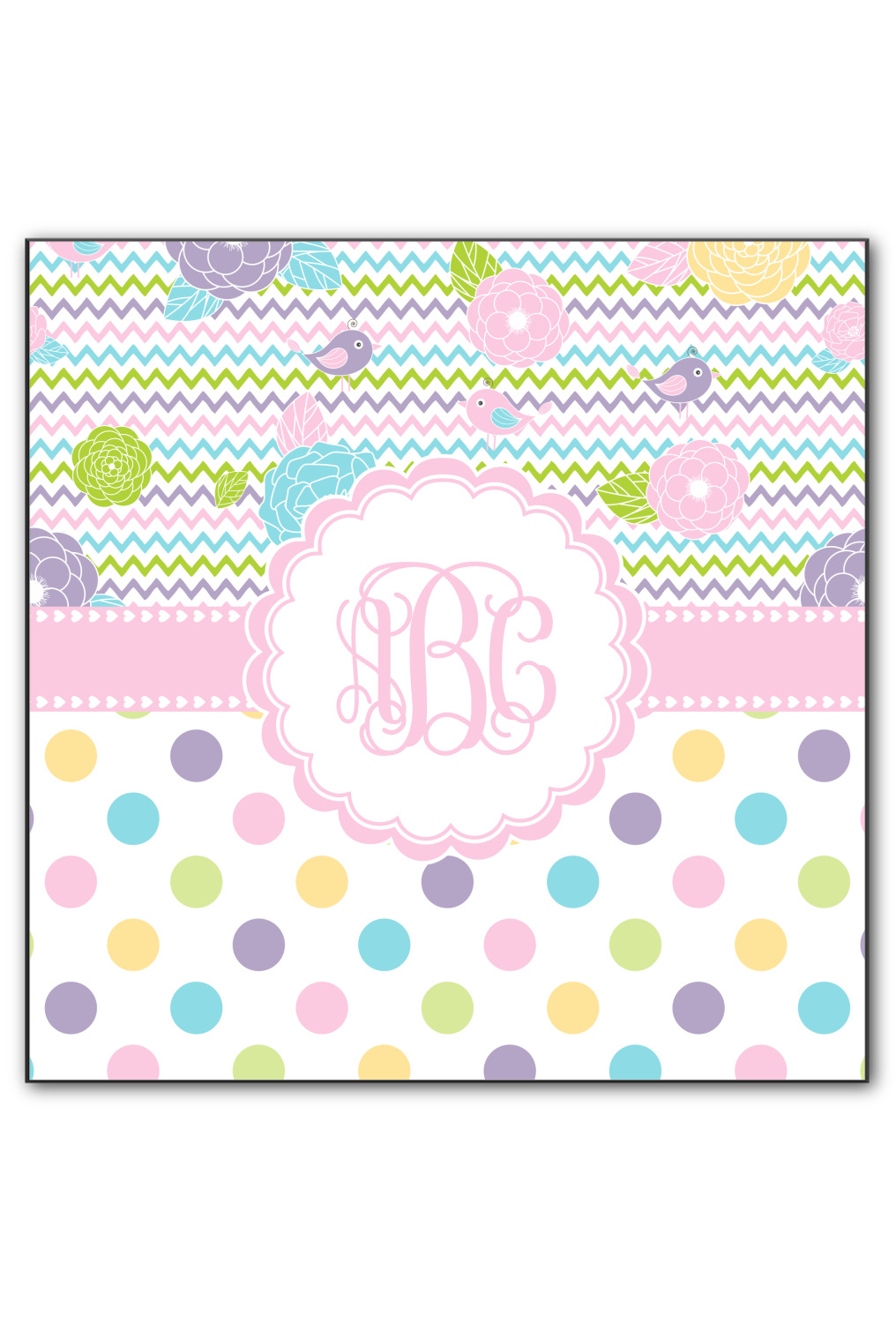 Looking for a classic girly girl design? You found it! It has everything that should please the girly girl. It has chevron, polka dots, flowers & birds along with an interlocking monogram and all done up in gorgeous pastel colors.