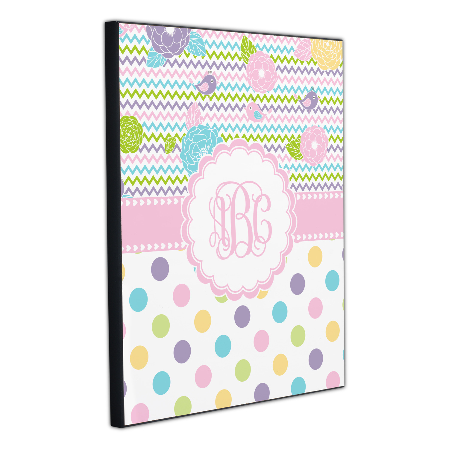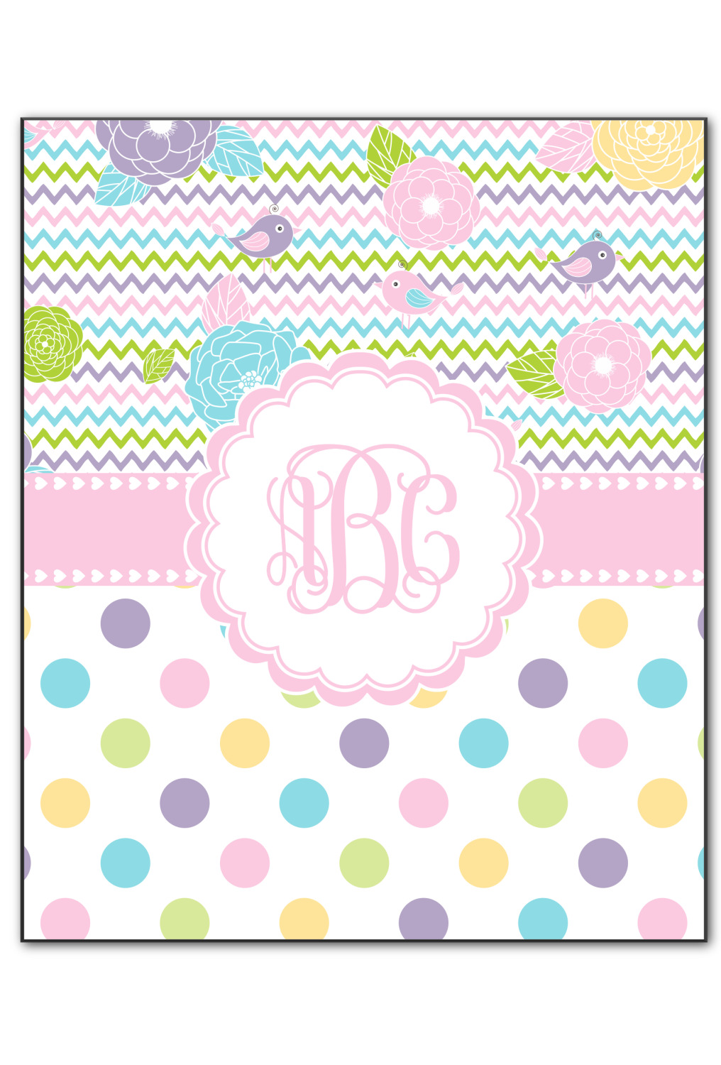 Looking for a classic girly girl design? You found it! It has everything that should please the girly girl. It has chevron, polka dots, flowers & birds along with an interlocking monogram and all done up in gorgeous pastel colors.