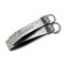 These key fob keychains are made from a polyester weave, right here in the USA. They feature a silver, metal clasp, attached to a round keyring. The piece gives the personalized wristlet a beautiful, finished look. Your customized design is printed on the outside of the keychain strap. We carry these wristlets in two sizes: small, which is 5 inches in width, and large, which is 5.5 inches in width.