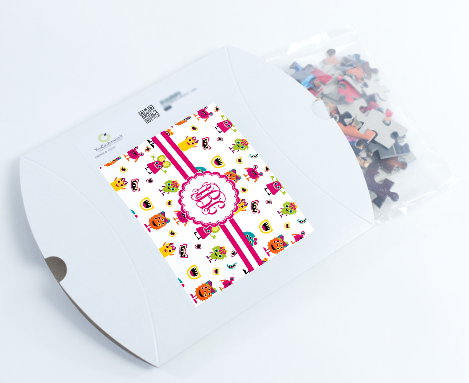 You can also upload your logo or art that you or your kids drew. To create more challenging jigsaw puzzles, you can create a pattern from with your logo or artwork. You can also add other elements such as text or personalization.