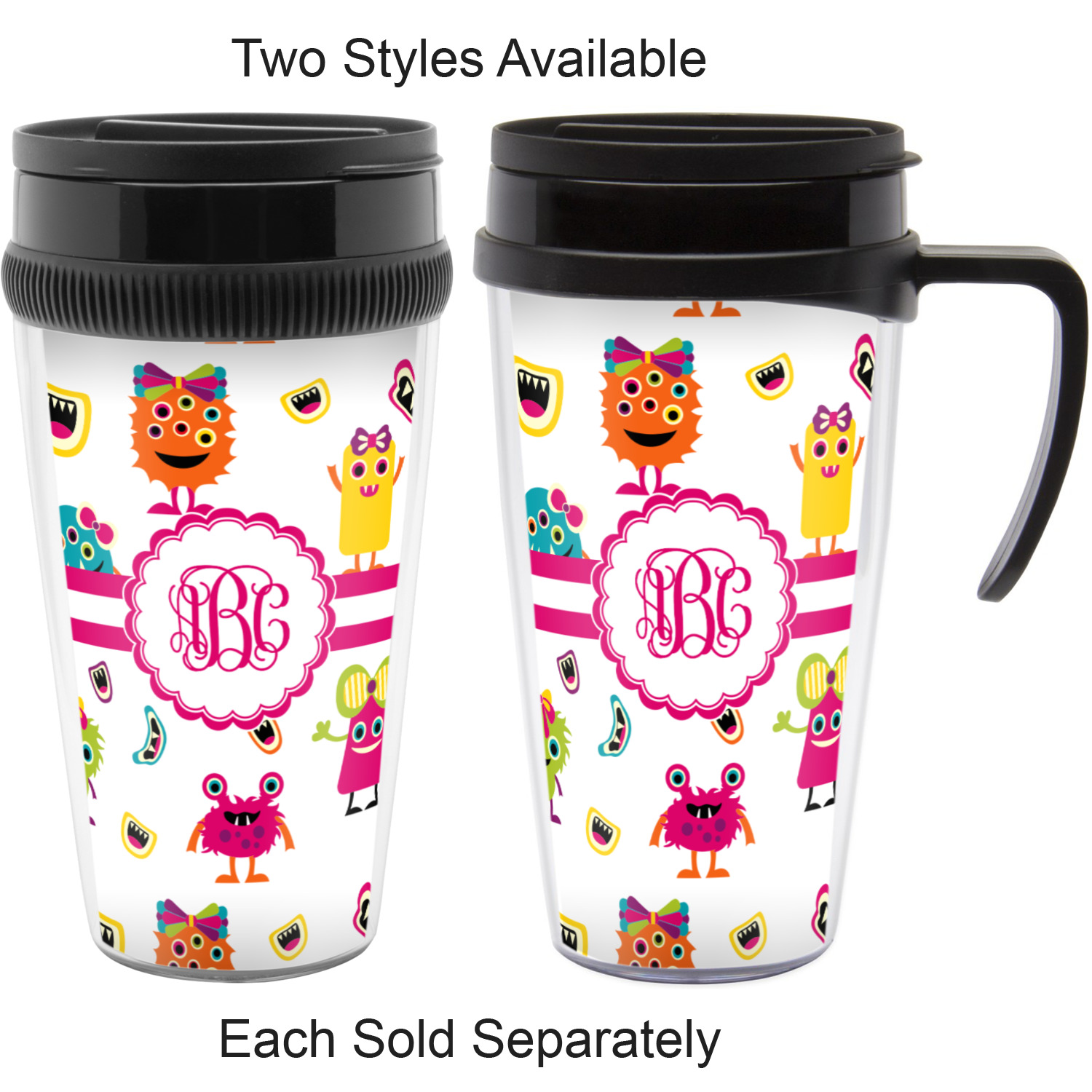 Keep your drink secure while on your daily commute with one of our personalized travel mugs! These travel mugs will add a splash of color and creativity to your kitchen counter-top, car cup holder, office desk, or wherever you choose to place them! With these custom mugs, you'll never have to settle for a boring, run-of-the-mill travel mug.