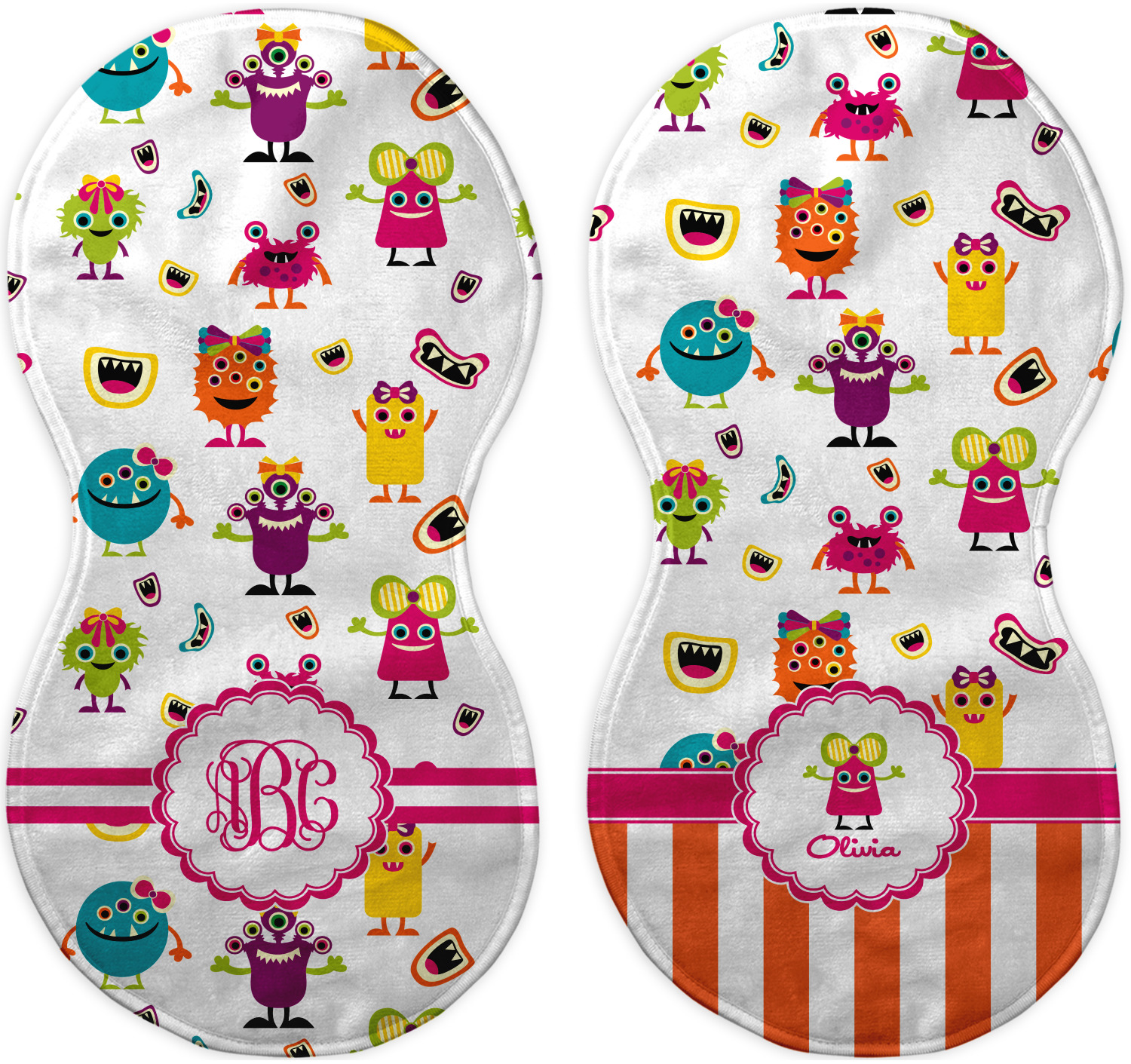 Choose your baby burp cloth from our two styles - Fleece (rectangular) or Microfiber Velour (peanut shape). The lightweight and absorbent design makes each burp cloth multipurpose; use them as a burp pad, a lap pad, a changing table, or a spare cloth to clean up any baby mess. Your customization is displayed across the front with baby-safe ink to ensure extra comfort with a white backing.