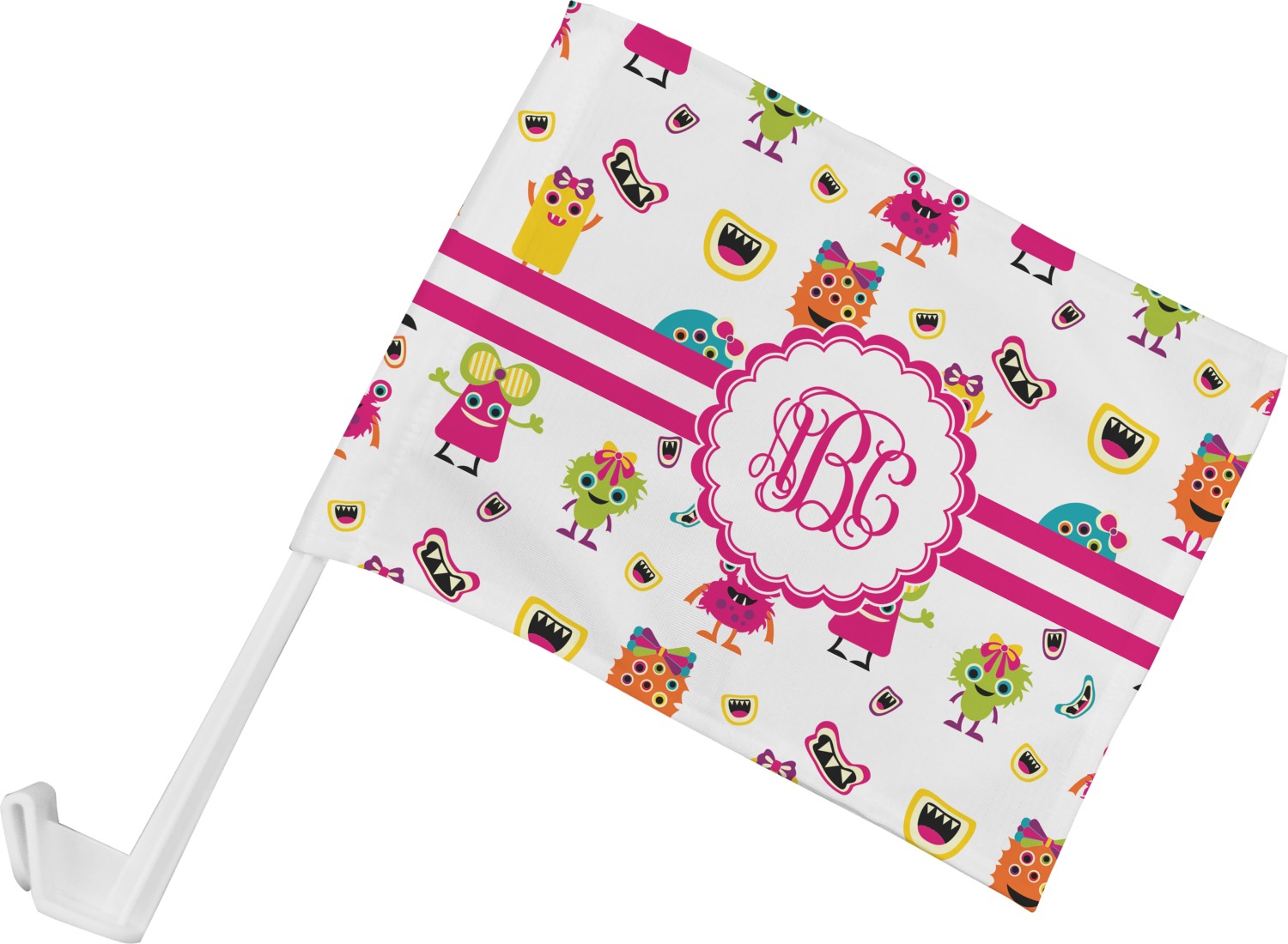 Our personalized flags are made from a durable, yet lightweight cloth that will proudly bear your logo or design of choice, while withstanding the outside elements. We have two size options - 8" x 11" and 11" x 15". Both come with a flag pole which includes a clip that secures the pole to the side window, whether it is rolled up or down. The flags are printed on both sides to display your design from all directions.