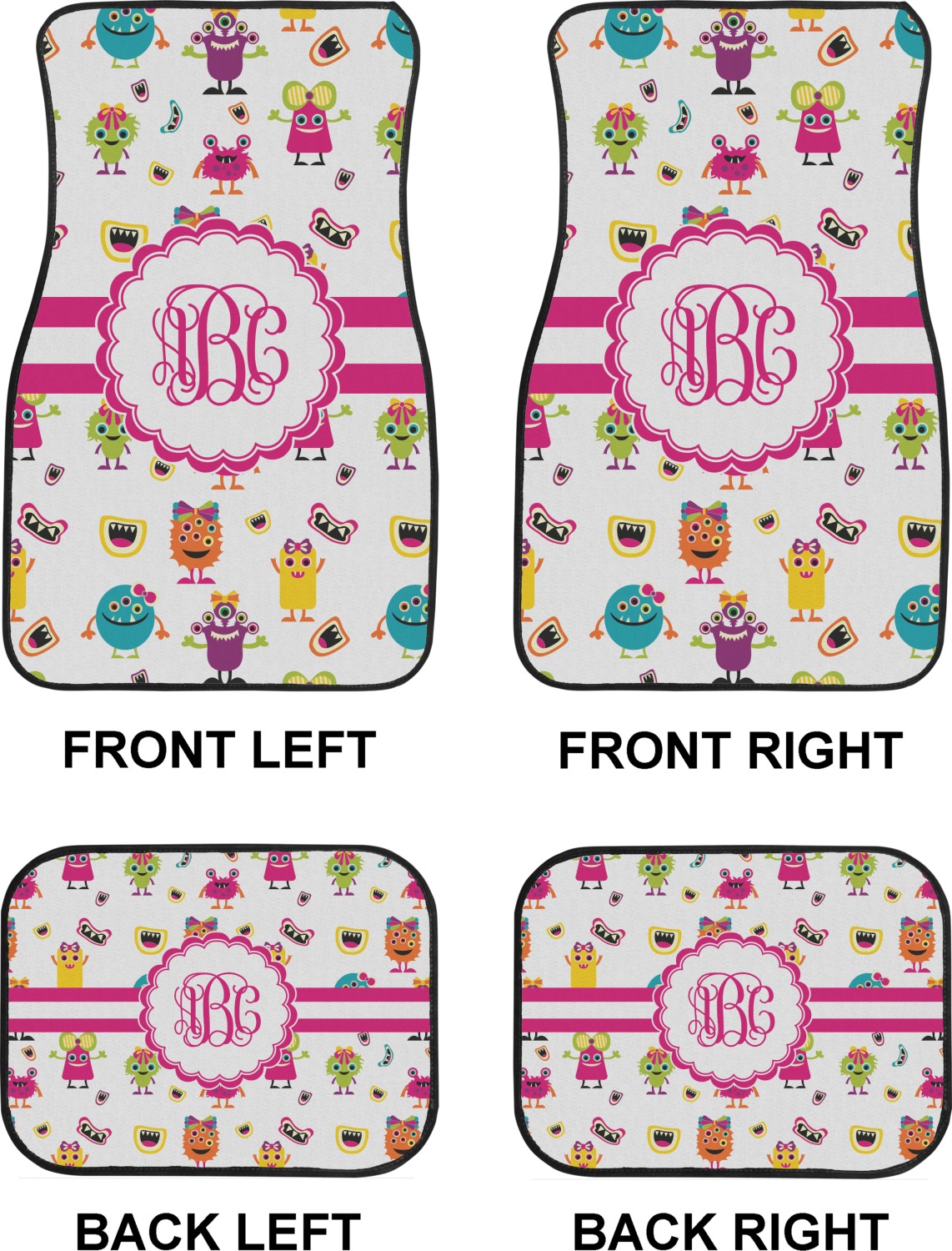 We craft our auto floor mats mats from polyester, apply a black finish to the edges, and lined at the bottom to prevent slippage. These mats protect your floors from grass, mud, and any accidental spills. We display your personalized design on the front face of each mat. The sizes of these car floor liners are standardized to provide a versatile fit for all vehicles. The front rows car mats measure at 17 by 26.5 inches, while the back rows measure at 17 by 13 inches. We sell three packages of car floor mats. You can purchase a pair of front row car mats, a pair of back row car mats, or a set of front row and back row car mats. To make an informed purchase, we recommend measuring the surface area of your car floors.