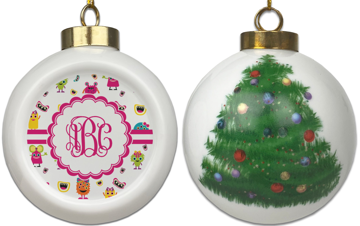 Our Christmas ornaments are a unique ceramic ball shape with a twist as it has a flat face to display your custom design! Select from one of our two design types - Christmas Tree or Poinsettia Garland - to adorn the curved back of your personal design. Each ornament measures 3H x 2.5W x 2D accompanied with a gold string accent for finishing touches to hang on your beautiful Christmas tree!