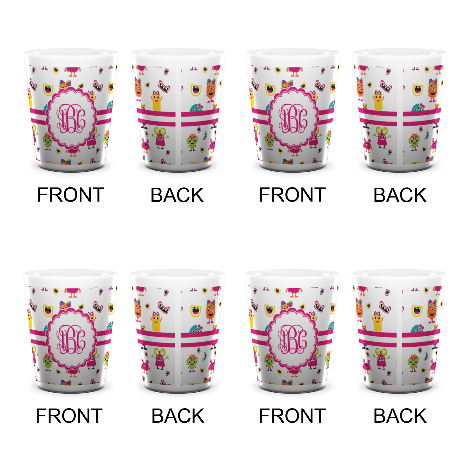 Made from ceramic these shot glasses are printed in full color with the design of your choice. These are a standard 1.5oz size and stand 2.25" tall. Available in a full white ceramic or a two-tone with a black color inside the shot glass. Buy a single or a set of 4, all of which can be designed separately to get you just what you want and need.