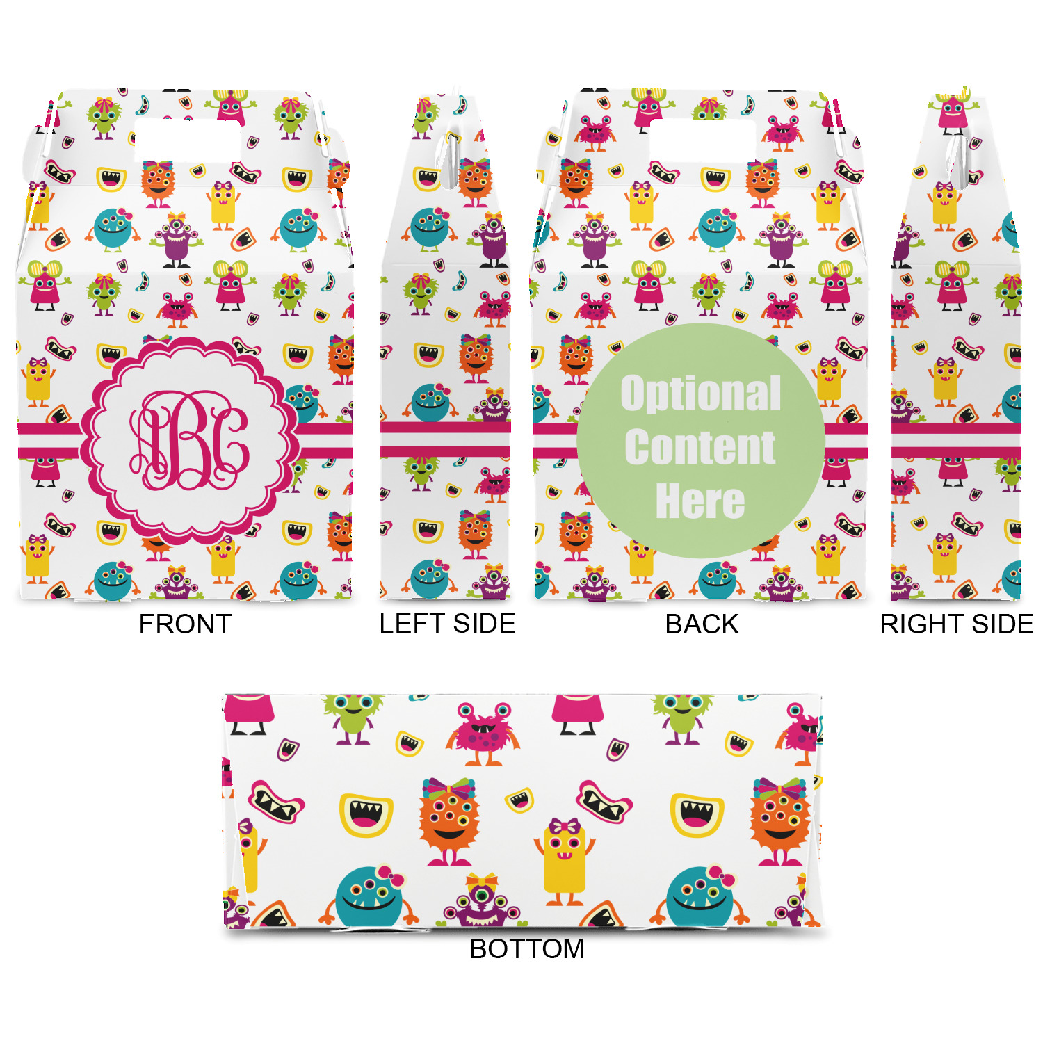 Who says all girls have to be sugar and spice and everything nice? For the little girls that have a big imagination and an adventurous side we have this fun little girly monster pattern. Monsters galore highlight this pattern in colors of hot pink, orange, yellow, green, aqua blue, and purple. Laughing monster mouths dot the pattern throughout.