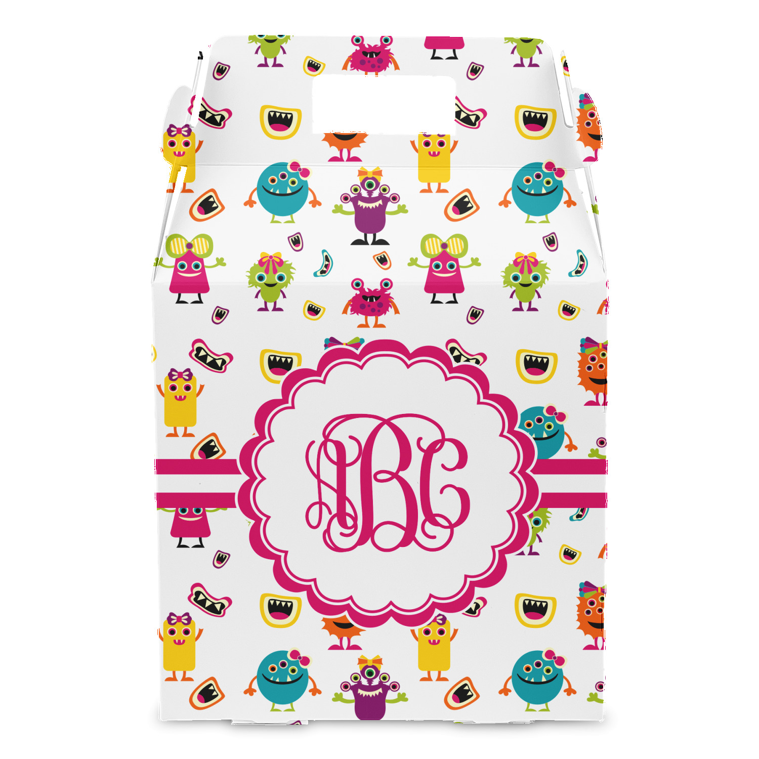 A white band trimmed in hot pink tie everything together. A gorgeous scallop label is added to showcase a personalized monogram.