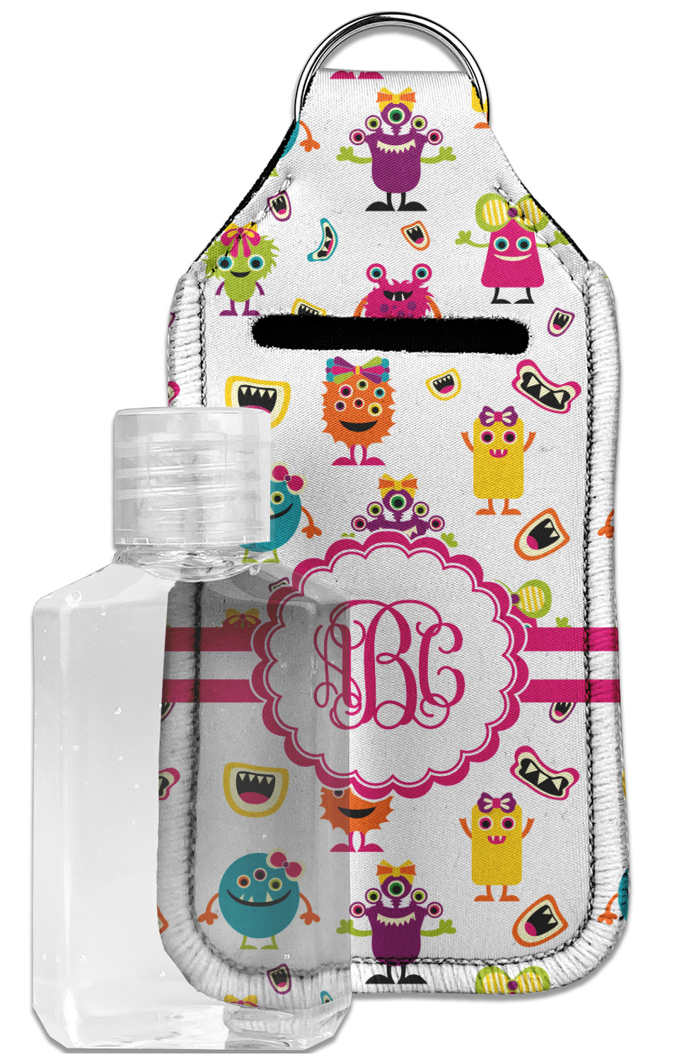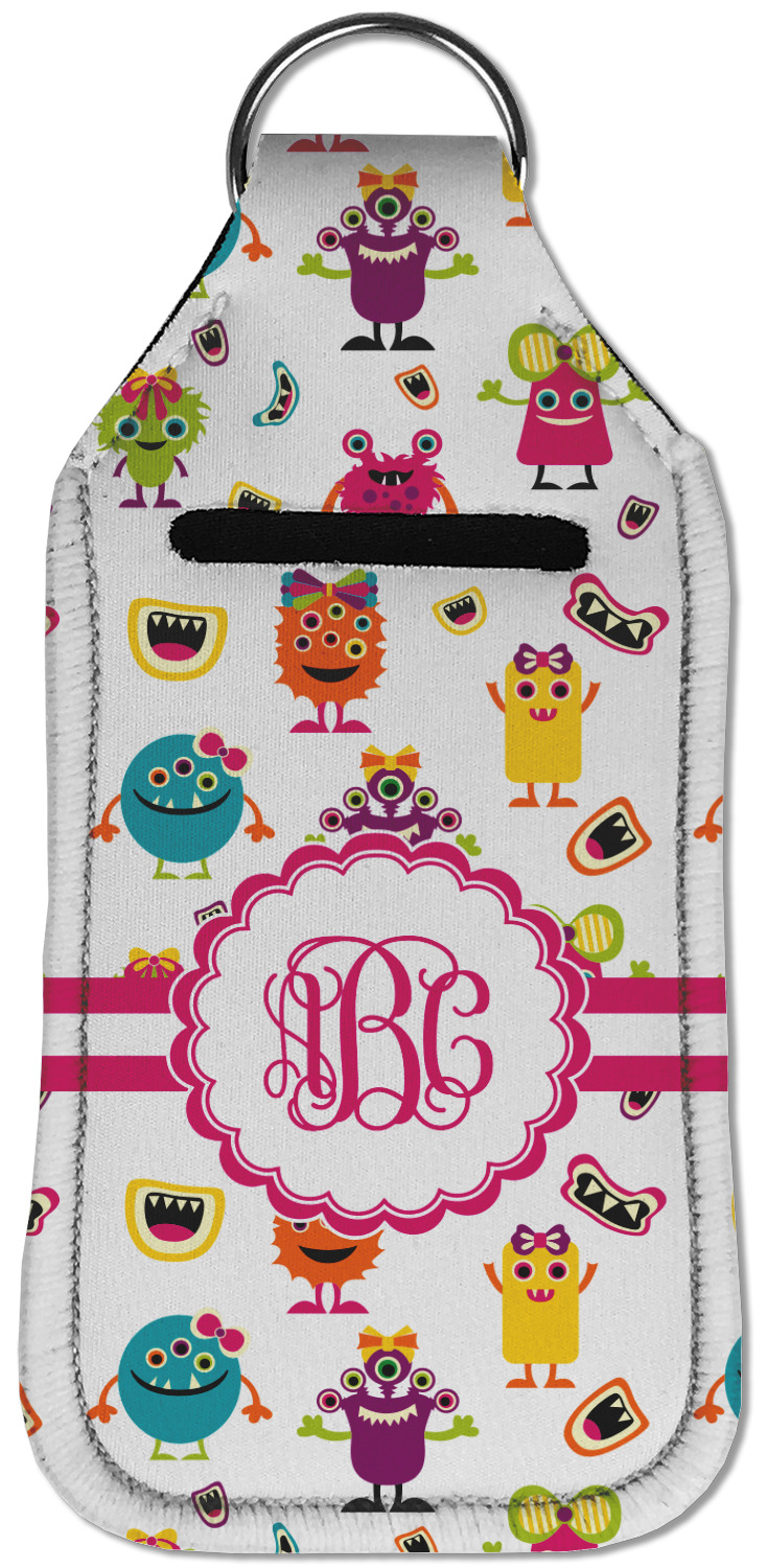 Each hand sanitizer holder comes with its own empty travel-sized, refillable hand sanitizer sure to fit snug in your customized sanitizer case! Our hand sanitizer cases are a durable, yet soft neoprene material sure to last any daily activities or travel agenda. Customize and personalize a hand sanitizer bottle holder with one of our two sizes - small (4.25" x 2.25") or large (5.5" x 2.5"). Each travel sanitizer holder comes with a keyring for attachment on bags, keys, or more!