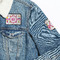 The patches are made to be ironed on with a heat press, your home iron, or they can also be sewn on. To iron on the patch, remove the paper backing, place on garment and iron on at 300 degrees (wool setting on the home iron) and press for 15 seconds from front side on a heat press and back side on a home iron.