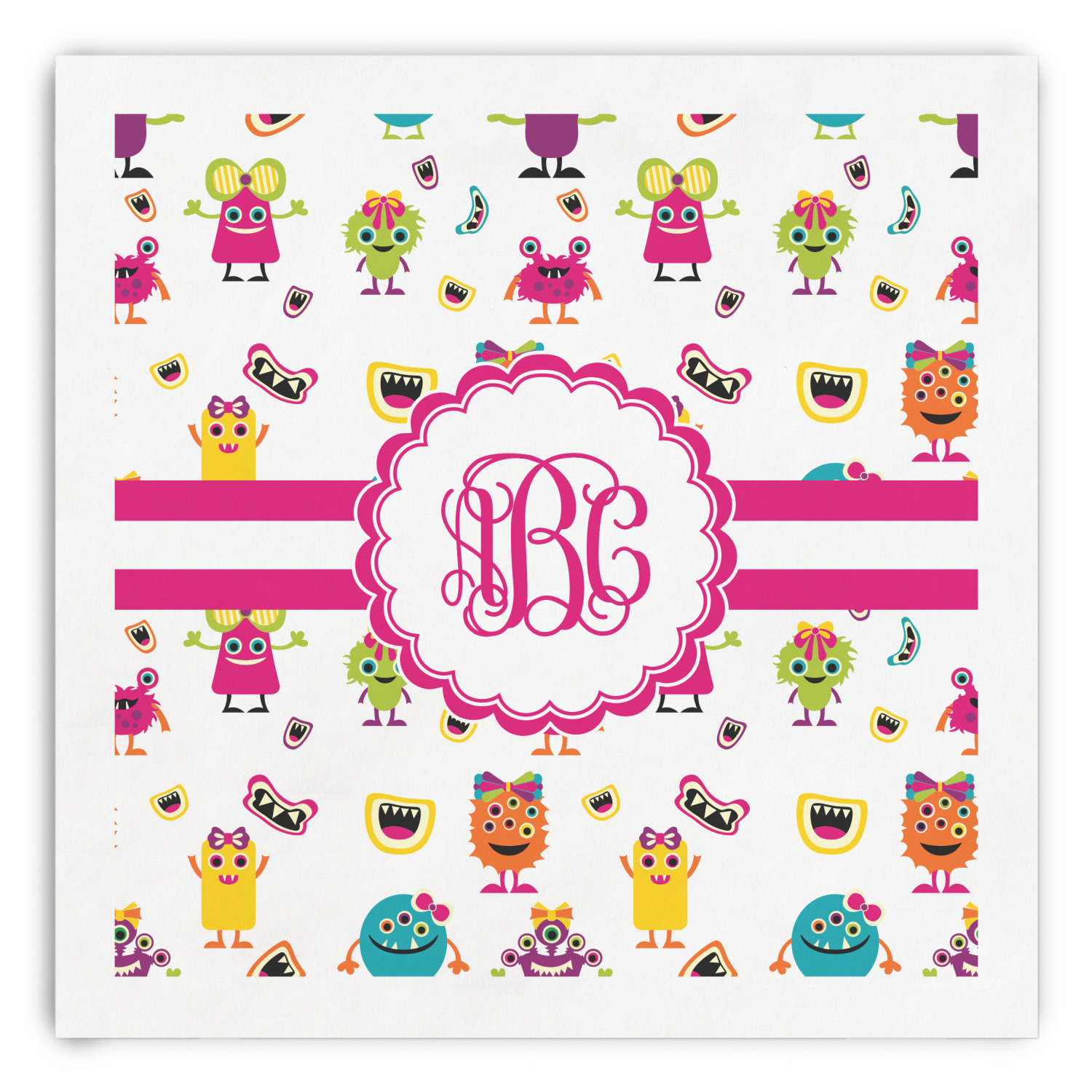 Who says all girls have to be sugar and spice and everything nice? For the little girls that have a big imagination and an adventurous side we have this fun little girly monster pattern. Monsters galore highlight this pattern in colors of hot pink, orange, yellow, green, aqua blue, and purple. Laughing monster mouths dot the pattern throughout.
