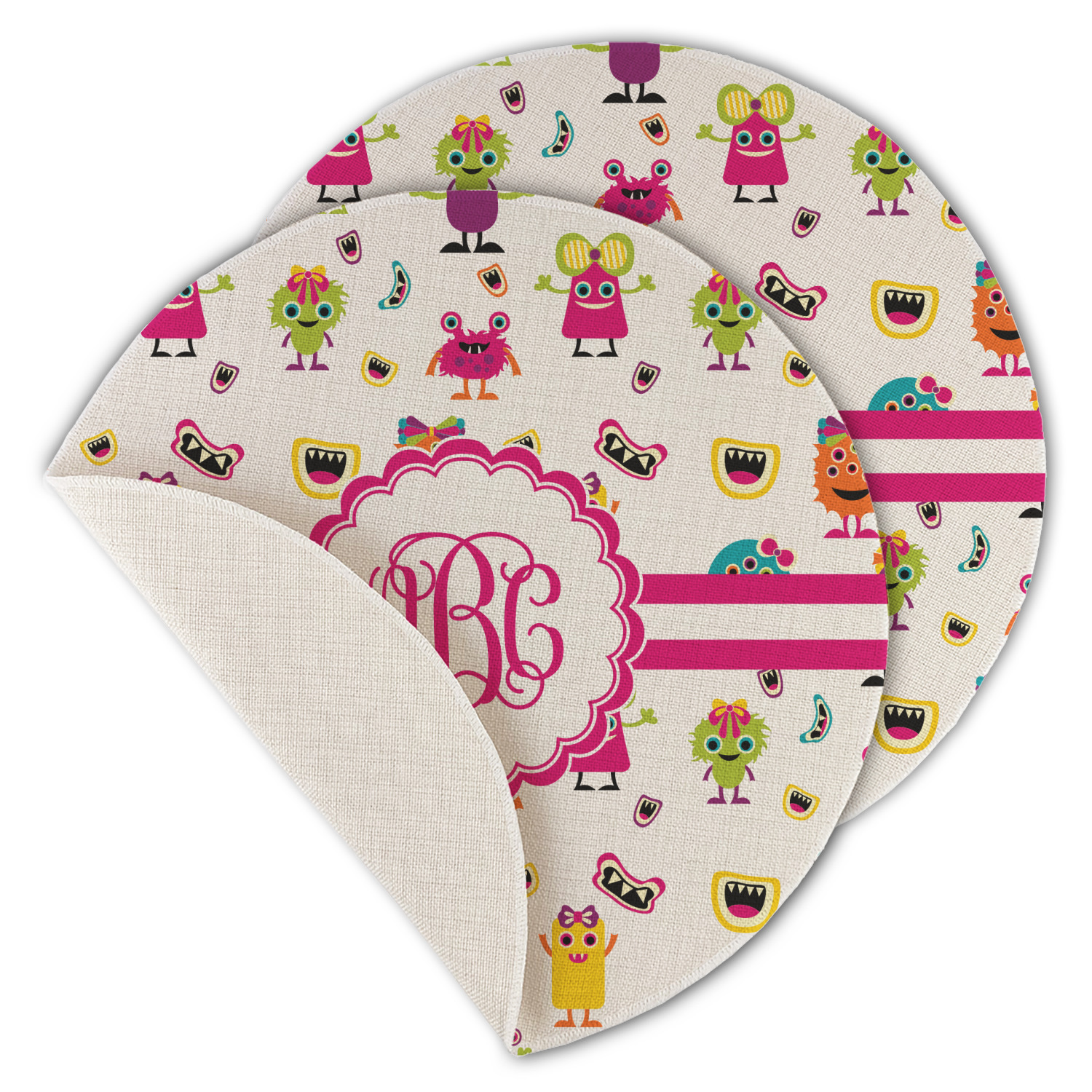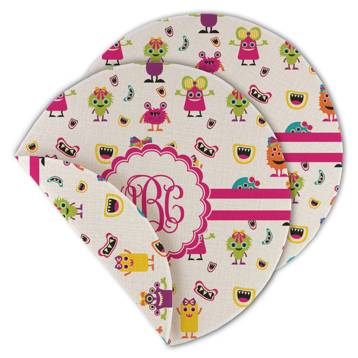 Who says all girls have to be sugar and spice and everything nice? For the little girls that have a big imagination and an adventurous side we have this fun little girly monster pattern. Monsters galore highlight this pattern in colors of hot pink, orange, yellow, green, aqua blue, and purple. Laughing monster mouths dot the pattern throughout.