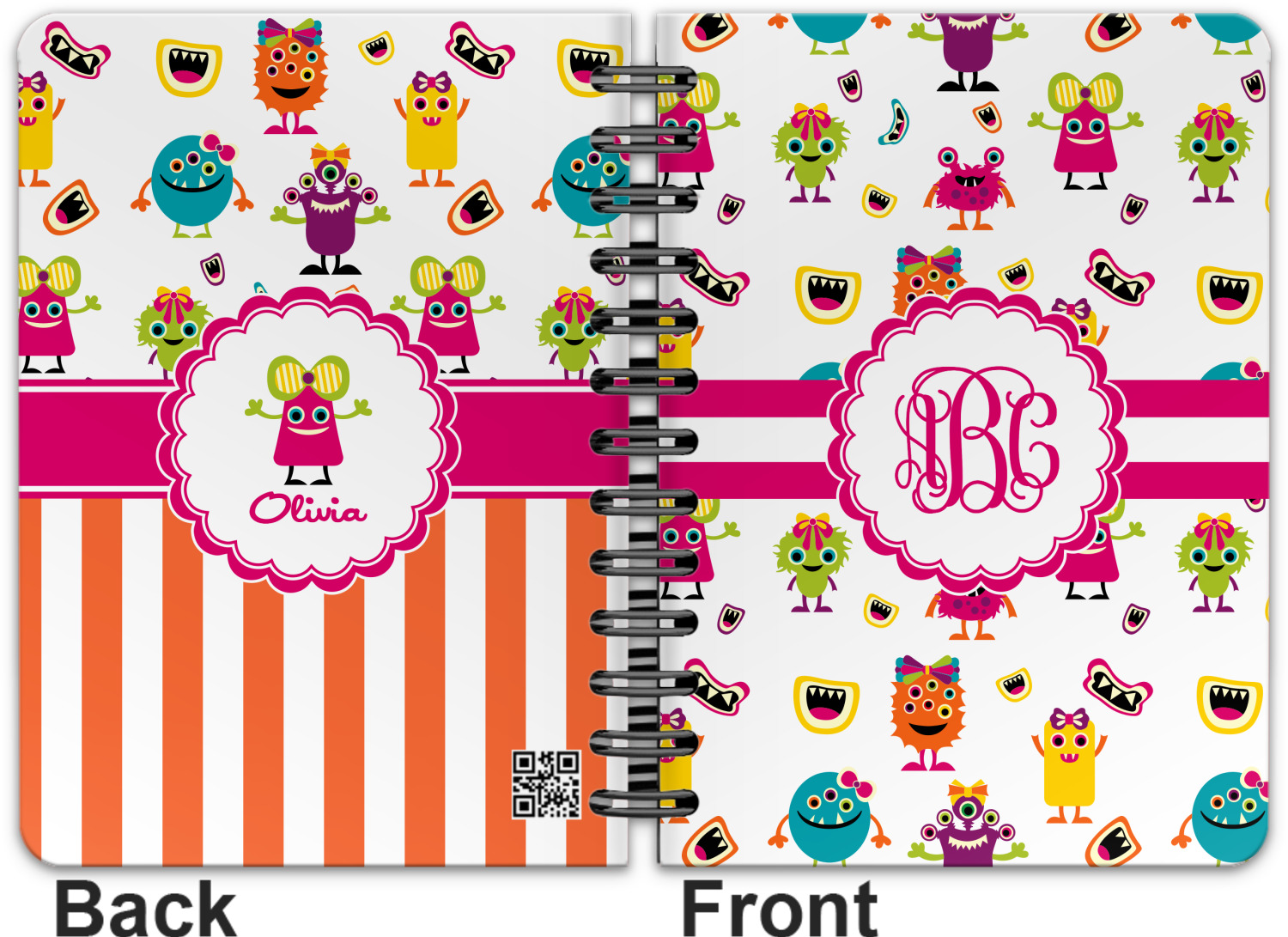 This spiral notebook includes 75 sheets of thick, ruled paper. The front and back of this custom notebook is made of a robust, laminate, plastic covering. We print your personalization on these two panels, underneath a glossy finish, which emphasizes the colors of your design. The two panels and the sheets of paper are held together by a sturdy, black coil. The paper within your bound notebook is perforated for easy, clean tearing.