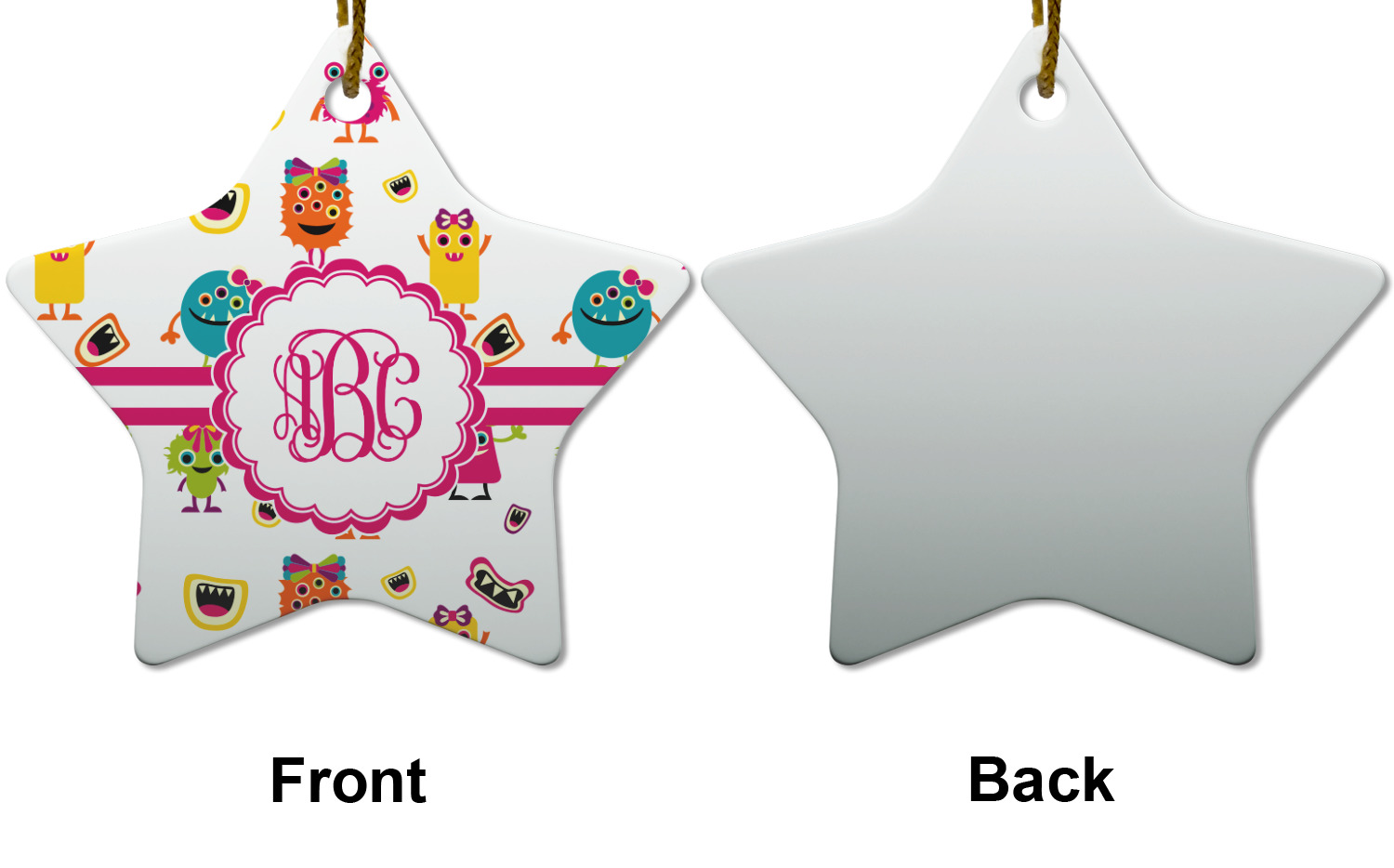 Have a happy holiday and share the joy of Christmas with your loved ones by hanging up personalized ceramic ornaments! Ornaments add a touch of who you are and the things you love onto the Christmas tree! Create custom ornaments for the kids and have them hang up their own star with their name, or pay remembrance this holiday to missed loved ones with our ceramic heart ornament. Browse many of our unique designs and customize them the way you'd like! From monograms, logos, and patterns, we have it all! You can even upload a photo of your family for us to print onto the ornament! The possibilities are endless!