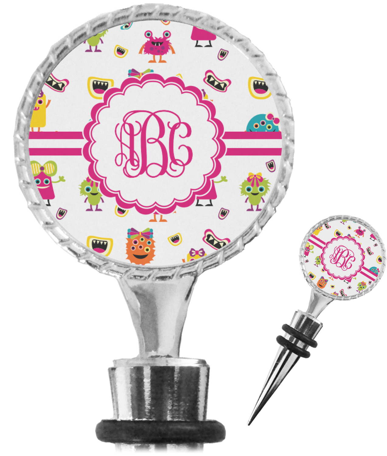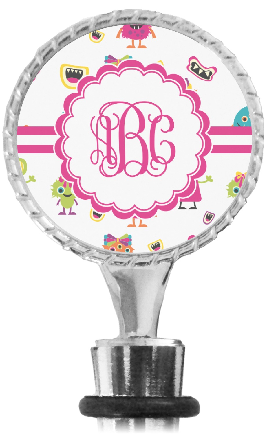 The top part of your bottle stopper is comprised of a zinc ring that displays your customization(s) in its middle, on both sides. The ring is heavy duty, with a bright chrome finish. The body of the wine stoppers have two silicone rings to provide an airtight seal. These wine bottle stoppers measure at 1.625" L x 0.8125" W x 4.625" H; your custom wine stopper is meant to fit into most standard-sized wine bottles.