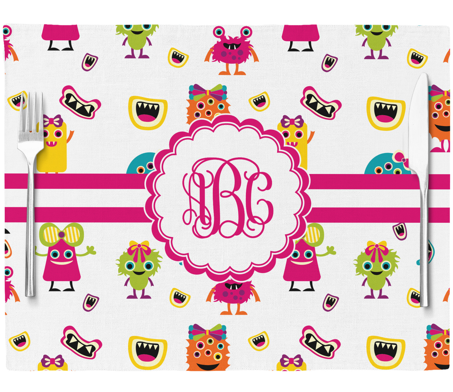 Each of our table mats are a poly twill material with woven burlap detailing. This creates a soft, quality placemat for us to fully print your personalized design across. The woven twill also adds a wrinkle-free surface to set your table! Each customizable placemat is a rectangle shape measuring at approximately 13 x 18 and printed here in the USA.