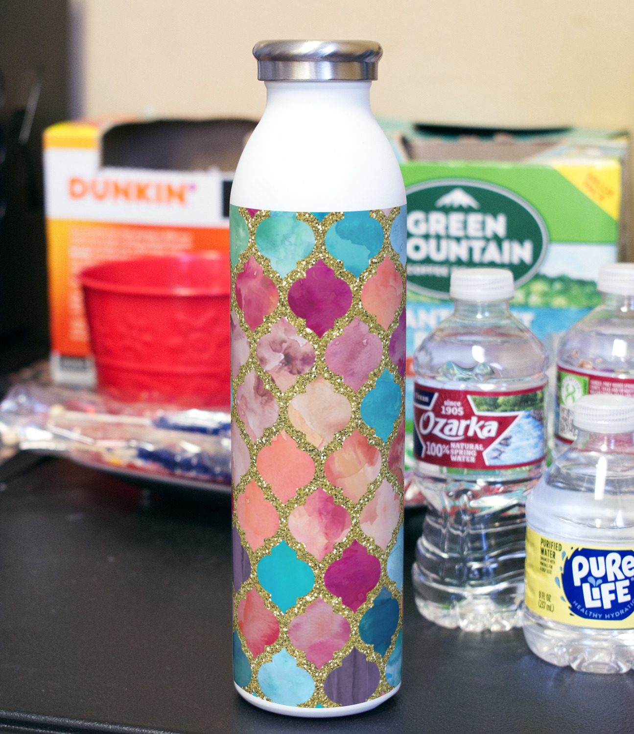 With the double wall insulated construction this bottle will keep drinks cold for 24 hours and hot for 12 hours. The large size allows for a beautiful large artwork space to allow you to make this bottle all your own.