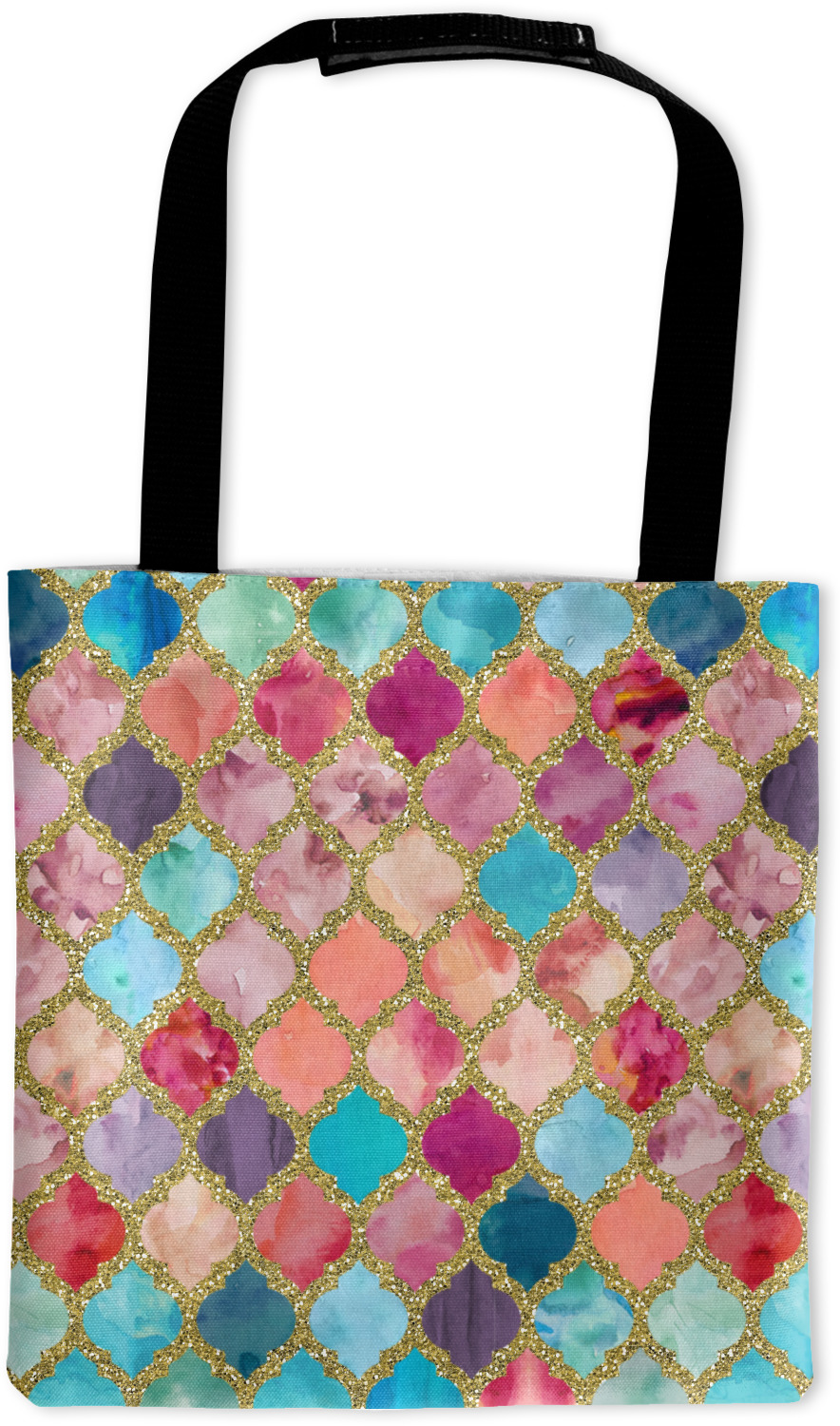 This design is simply the glitter moroccan pattern. The glitter outlining the pattern is a sparkling looking gold. The inside of the moroccan pattern is a watercolor texture with pinks, purples, teals, peaches, and blues. The coordinating design has a fun name and initial in the beautiful gold color.