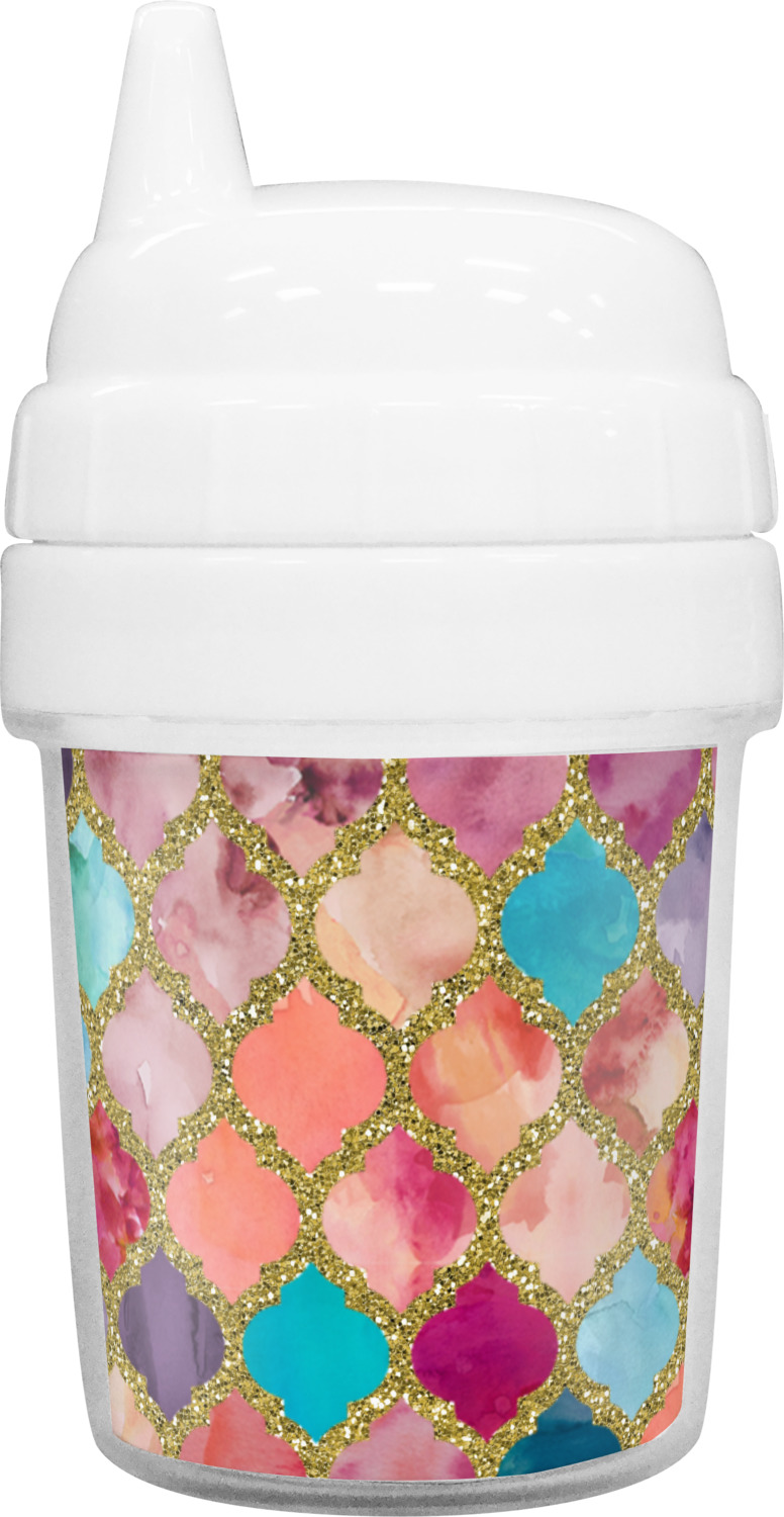 Our toddler cups are free of BPA, and have a twist-open lid so that you can easily fill and clean these cups for your young ones. Each cup also comes with a sippy nozzle to reduce spills. We offer these custom sippy cups in two different sizes; we have a baby sippy cup that holds 5 ounces, and a toddler sippy cup that holds 10 ounces. Your customization is printed on a premium glossy media insert that is placed within these toddler drinking cups.