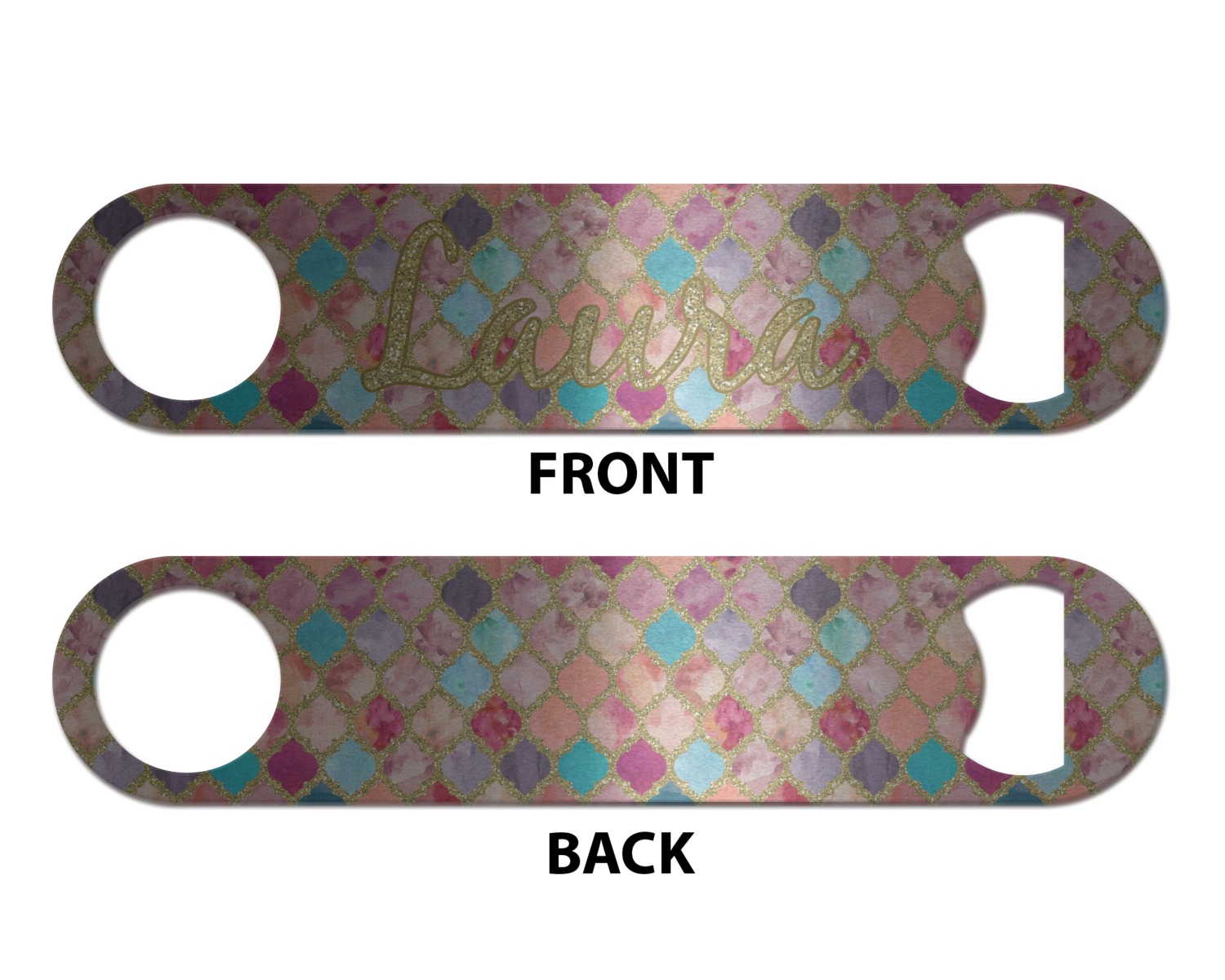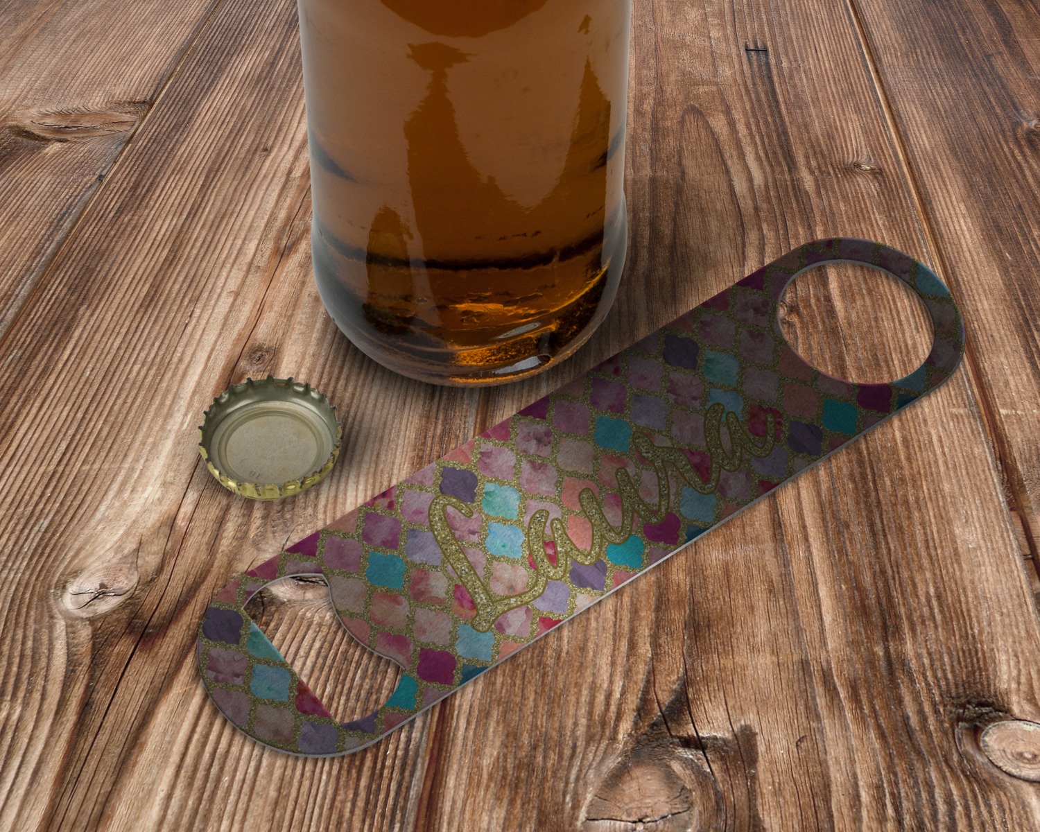 Stop struggling with the caps or your bottled beverages by purchasing one of our personalized bottle openers! These wrench-like custom bar blades are built to last. Customize one for your home's bar, or as a practical gift for a loved one!
