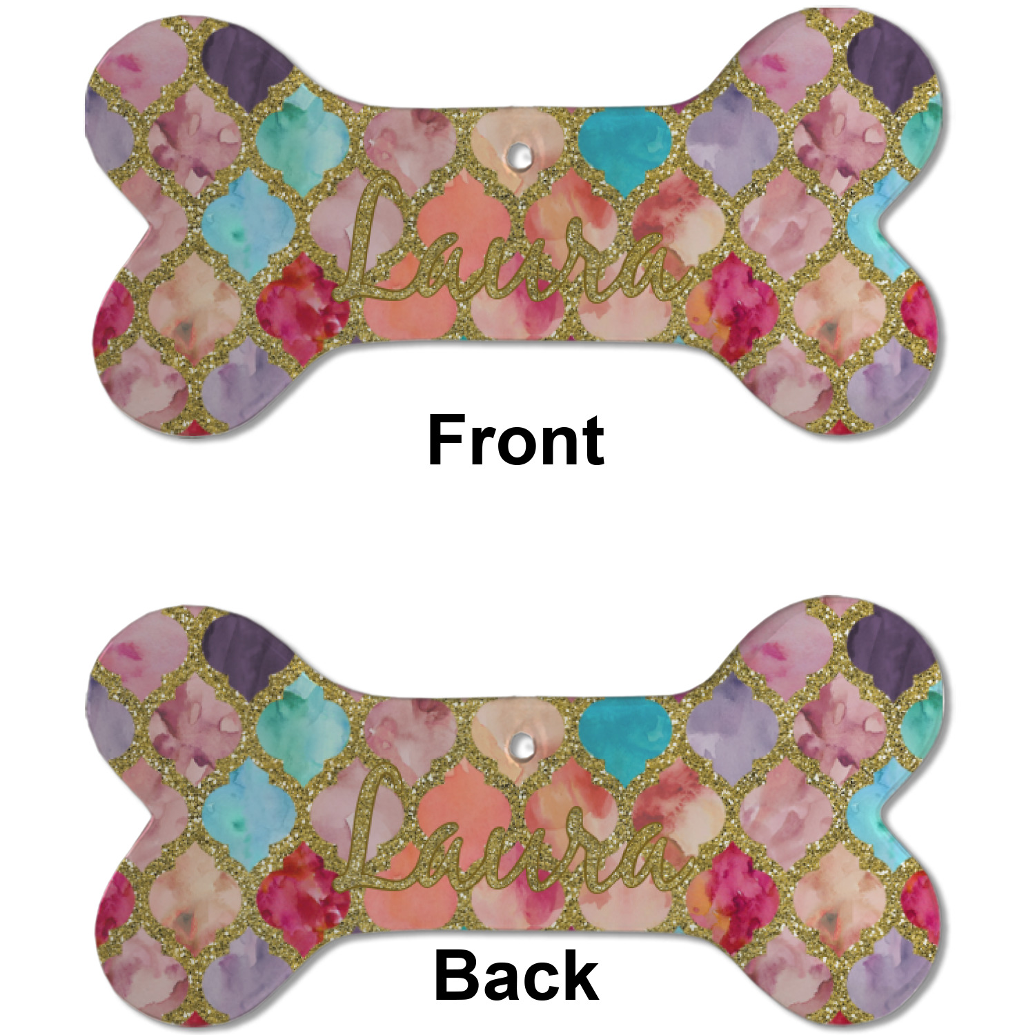 Our dog Christmas ornaments are a ceramic material with a bone-shaped structure hung horizontally. We offer two printing styles to personalize your furry friend's ornament! Choose a one-sided printing, perfect for wall decor, memorial accessory, or doghouse nameplate! Create a double-sided ornament perfect for adorning the Christmas tree. Each dog bone ornament is approximately 4.75" x 2.25" and is printed here in the USA.