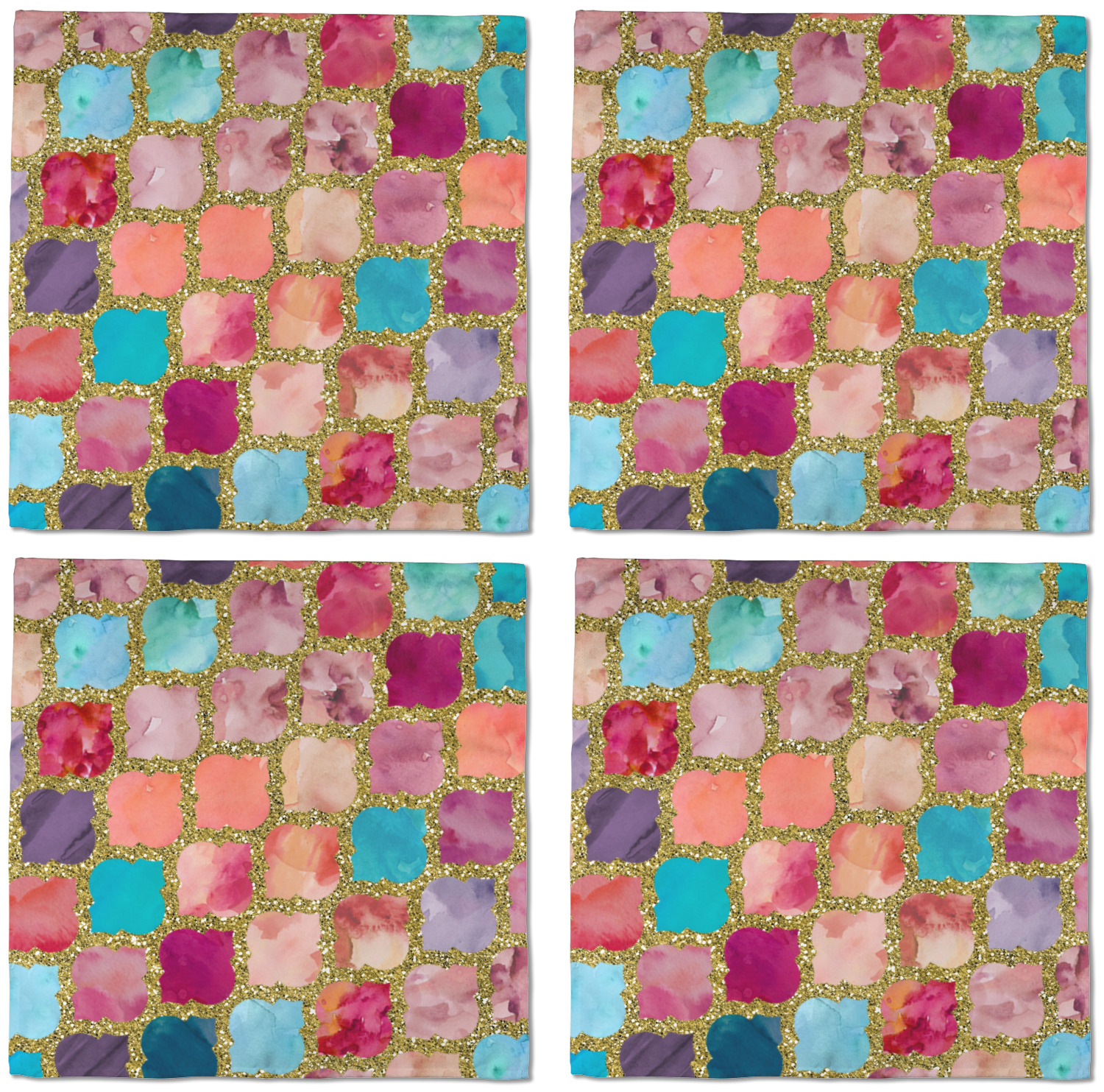 This design is simply the glitter moroccan pattern. The glitter outlining the pattern is a sparkling looking gold. The inside of the moroccan pattern is a watercolor texture with pinks, purples, teals, peaches, and blues. The coordinating design has a fun name and initial in the beautiful gold color.