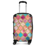 This design is simply the glitter moroccan pattern. The glitter outlining the pattern is a sparkling looking gold. The inside of the moroccan pattern is a watercolor texture with pinks, purples, teals, peaches, and blues. The coordinating design has a fun name and initial in the beautiful gold color.