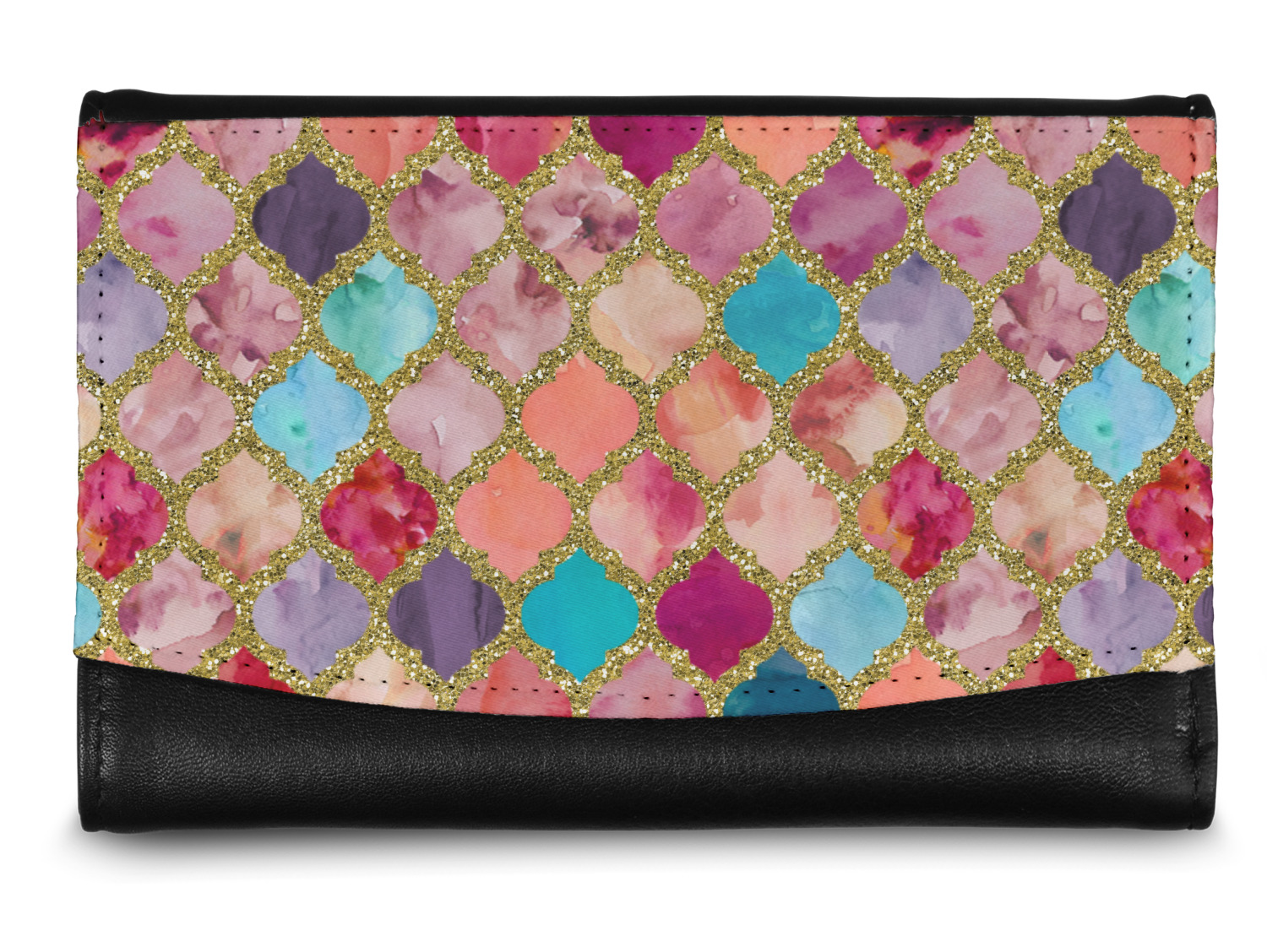 The compact size of this wallet - 5.5in wide, 3.5in tall and 0.75in thick when folded - makes it perfect to hold in hand and small enough to fit in a clutch or a normal size purse. The outside flap is customized with your choice of artwork and closes with a snap closure - with two different snaps to allow it to be adjusted when storing more items - to securely fasten the flap.