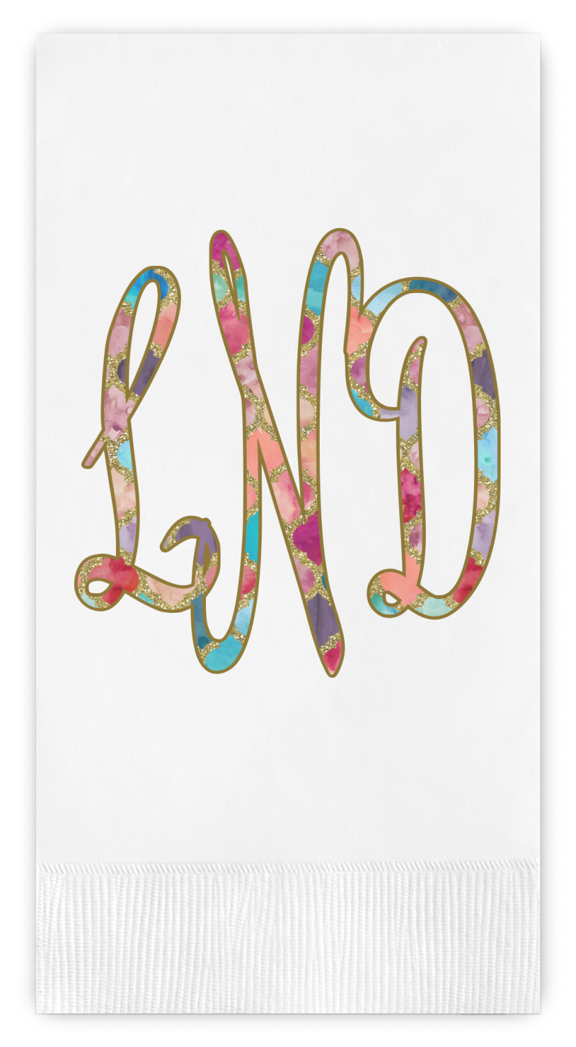 This design is simply the glitter moroccan pattern. The glitter outlining the pattern is a sparkling looking gold. The inside of the moroccan pattern is a watercolor texture with pinks, purples, teals, peaches, and blues. The coordinating design has a fun name and initial in the beautiful gold color.