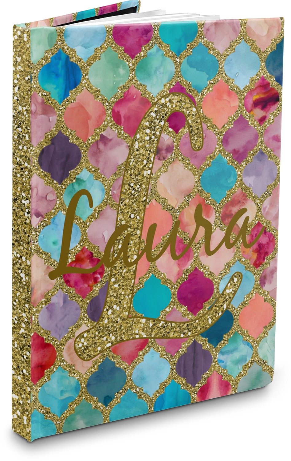 The hardcover of this personalized journal is covered with a smooth, matte, laminate coating. The unique laminate of the covers gives the hardcover notebook a smooth, sleek feel. Filled with 75, lined, white pages, this hardbound notebook has enough room for your reminders and notes. For your convenience, the pages have been perforated, which guarantees an easy tear and removal. Your customization is printed across the entire cover of the book, while the interior is black in color.