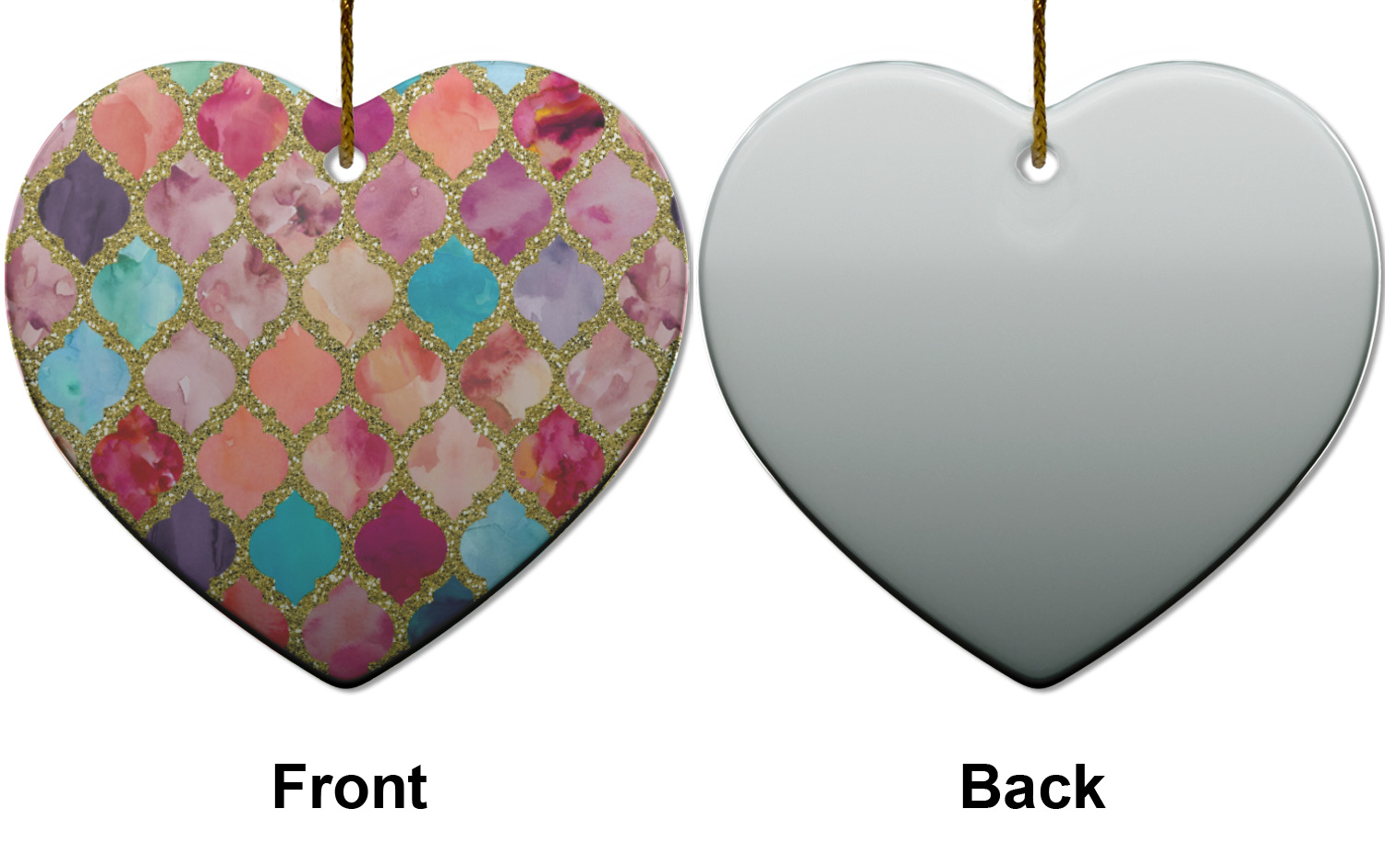 This design is simply the glitter moroccan pattern. The glitter outlining the pattern is a sparkling looking gold. The inside of the moroccan pattern is a watercolor texture with pinks, purples, teals, peaches, and blues. The coordinating design has a fun name and initial in the beautiful gold color.