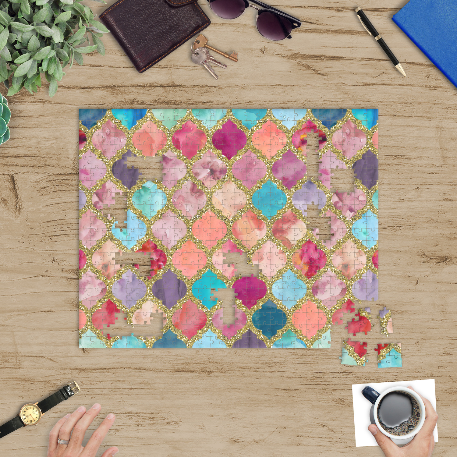 You can also upload your logo or art that you or your kids drew. To create more challenging jigsaw puzzles, you can create a pattern from with your logo or artwork. You can also add other elements such as text or personalization.