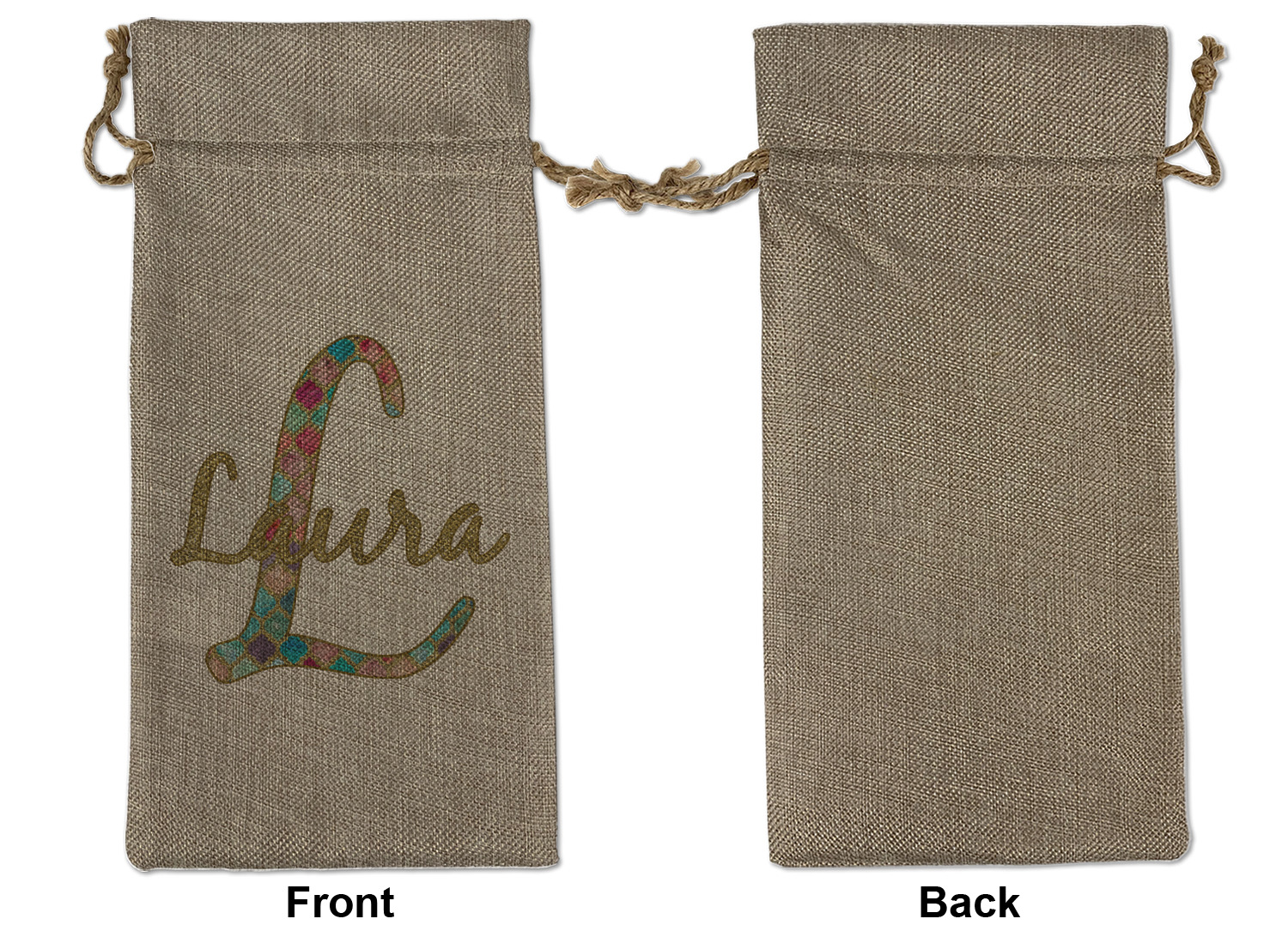 We sell our Burlap Gift Bags in 3 variant sized bags. Made with burlap polyester, each personalized bag can be secured with a twine drawstring pull. Your custom design is available to print on one side or both sides - completely up to you! The sizes of the bags measure approximately 4.5" x 6.5" for the smallest size, 6.5" x 8.0" for the medium size, and 6.5" x 13.5" for the large-sized bag.