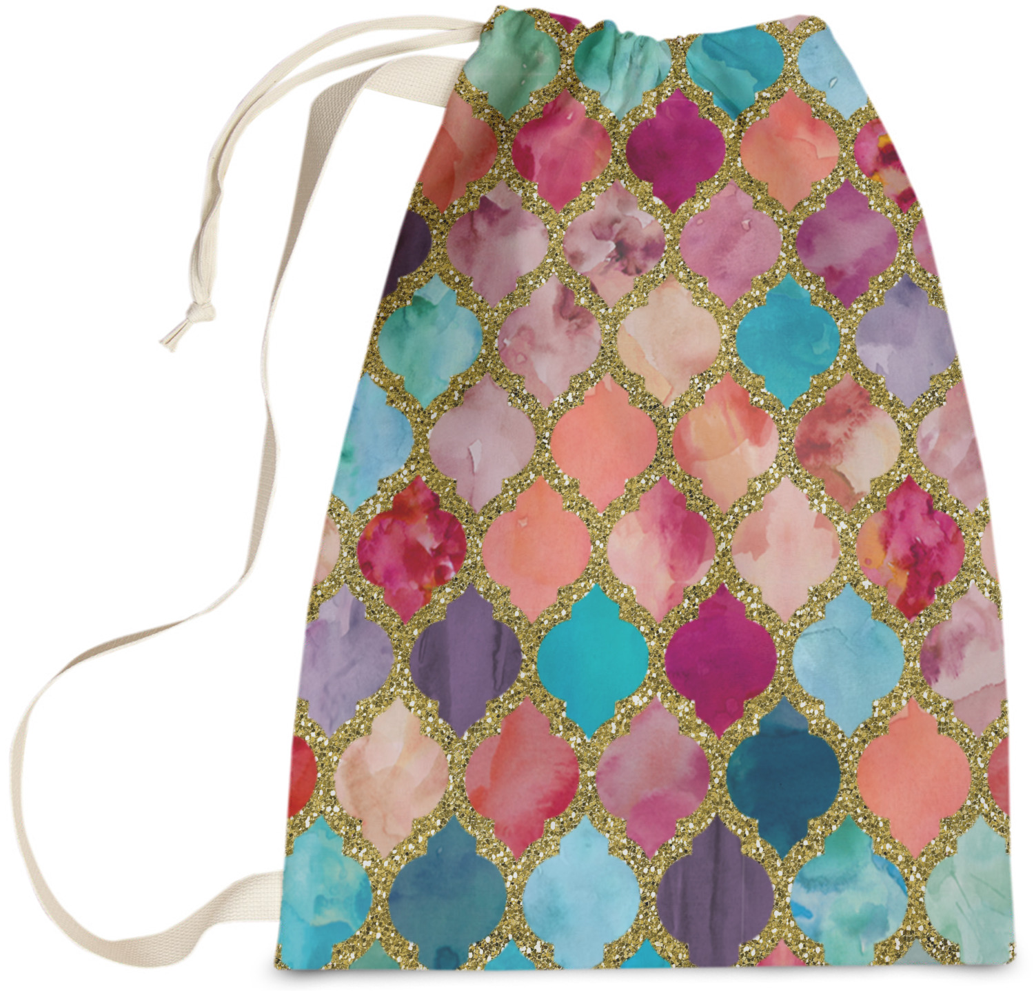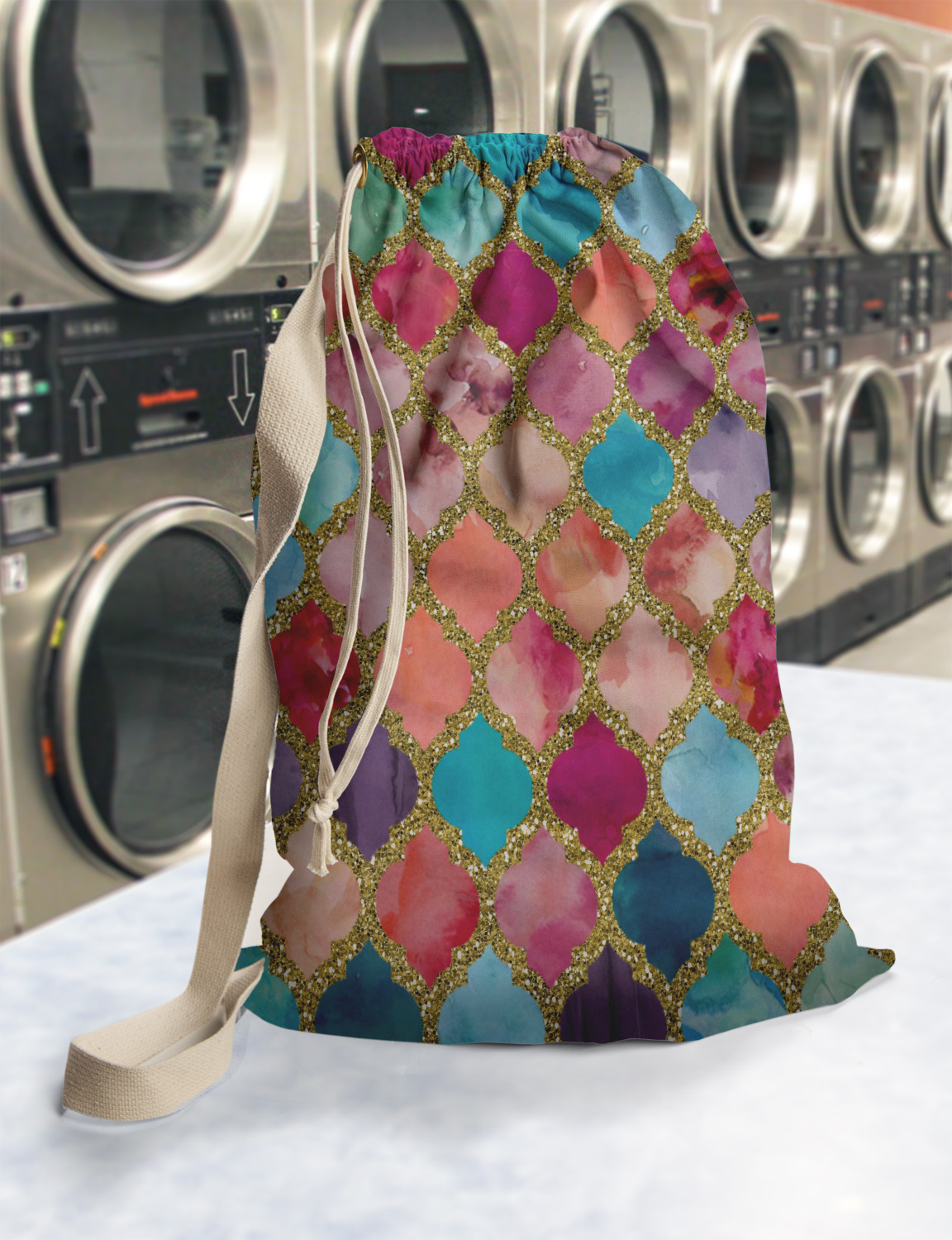 Our laundry bags are handmade in the USA; The fabric is printed using dye sublimation. The fabric is then cut and the grommets are added for the drawstring closure. The laundry bag is then sewn and the drawstring is fed through and knotted to create the cinch closure.