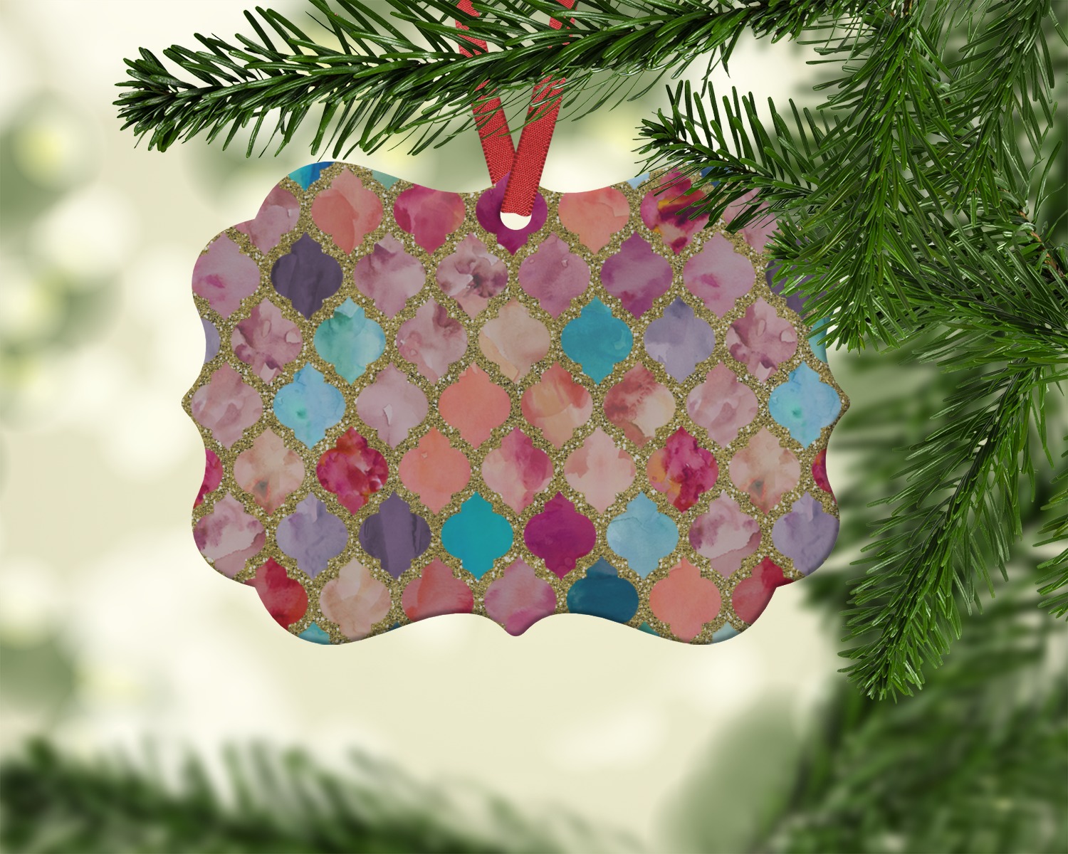 We offer double-sided printing on our personalized metal ornaments all with a gloss finish to make sure your Christmas tree continues to illuminate through the night. We offer 4 different metal ornament shapes to help express yourself or loved ones! Choose from our ball, paw print, star, or frame metal ornaments. Each metal ornament is an aluminum material sure to last you as many years as needed to share the joy and warmth of the holiday. We pair each customizable ornament with a red ribbon to tie your ornament and hang on your Christmas tree!