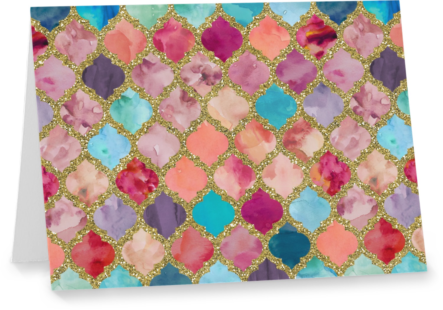 This design is simply the glitter moroccan pattern. The glitter outlining the pattern is a sparkling looking gold. The inside of the moroccan pattern is a watercolor texture with pinks, purples, teals, peaches, and blues. The coordinating design has a fun name and initial in the beautiful gold color.