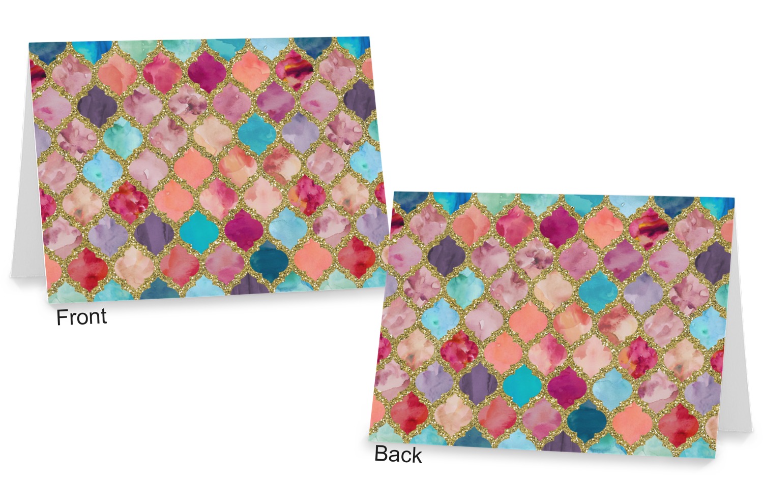 Our custom folded note cards are printed on premium 100lb. card stock and comes with white envelopes. The note card measure 5.5 by 4.25 inches and are blank on the inside for your handwritten message.