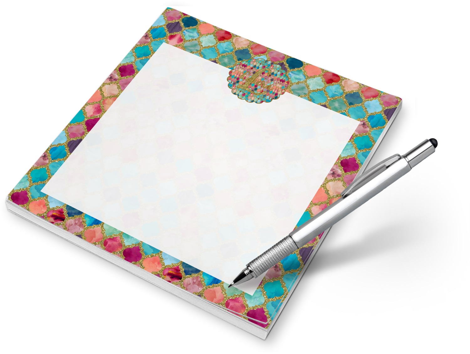 Your custom notepad features 50 sheets of thick, white paper, with your customization in the background and the edges. At approximately 6" x 5.5", these personalized memo pads are slightly larger than your average notepad. The individual notes tear easily from binding, which allows for quick, convenient, note-taking.
