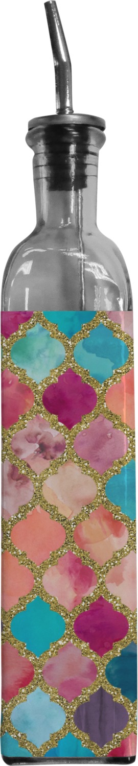 Made from recycled glass in Spain, these oil bottles have a classic, delicate look, and are accompanied by a metal spout for controlled pouring. Each bottle holds approximately 13 ounces and measures at 12 by 2 inches. We customize your glass oil bottle by applying your personalized design on the front and sides, using an adhesive. Our customizable stickers are made from high quality, gloss vinyl and are printed with waterproof, eco-solvent inks. These pieces are machine cut for accuracy and symmetry. The result is a robust, waterproof, adhesive decal that will not fade or deteriorate with time.
