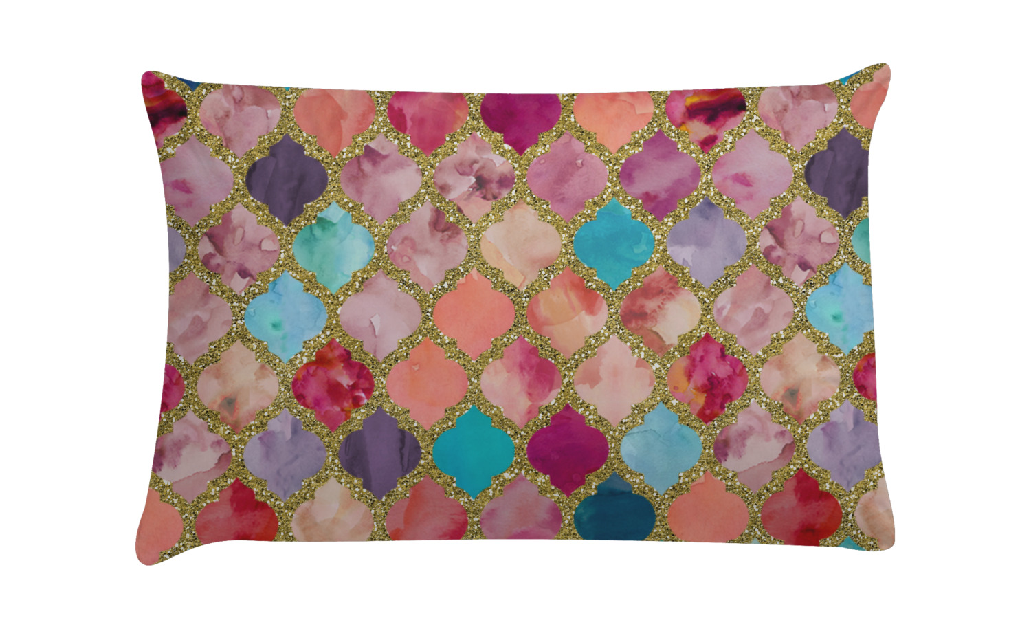 This design is simply the glitter moroccan pattern. The glitter outlining the pattern is a sparkling looking gold. The inside of the moroccan pattern is a watercolor texture with pinks, purples, teals, peaches, and blues. The coordinating design has a fun name and initial in the beautiful gold color.
