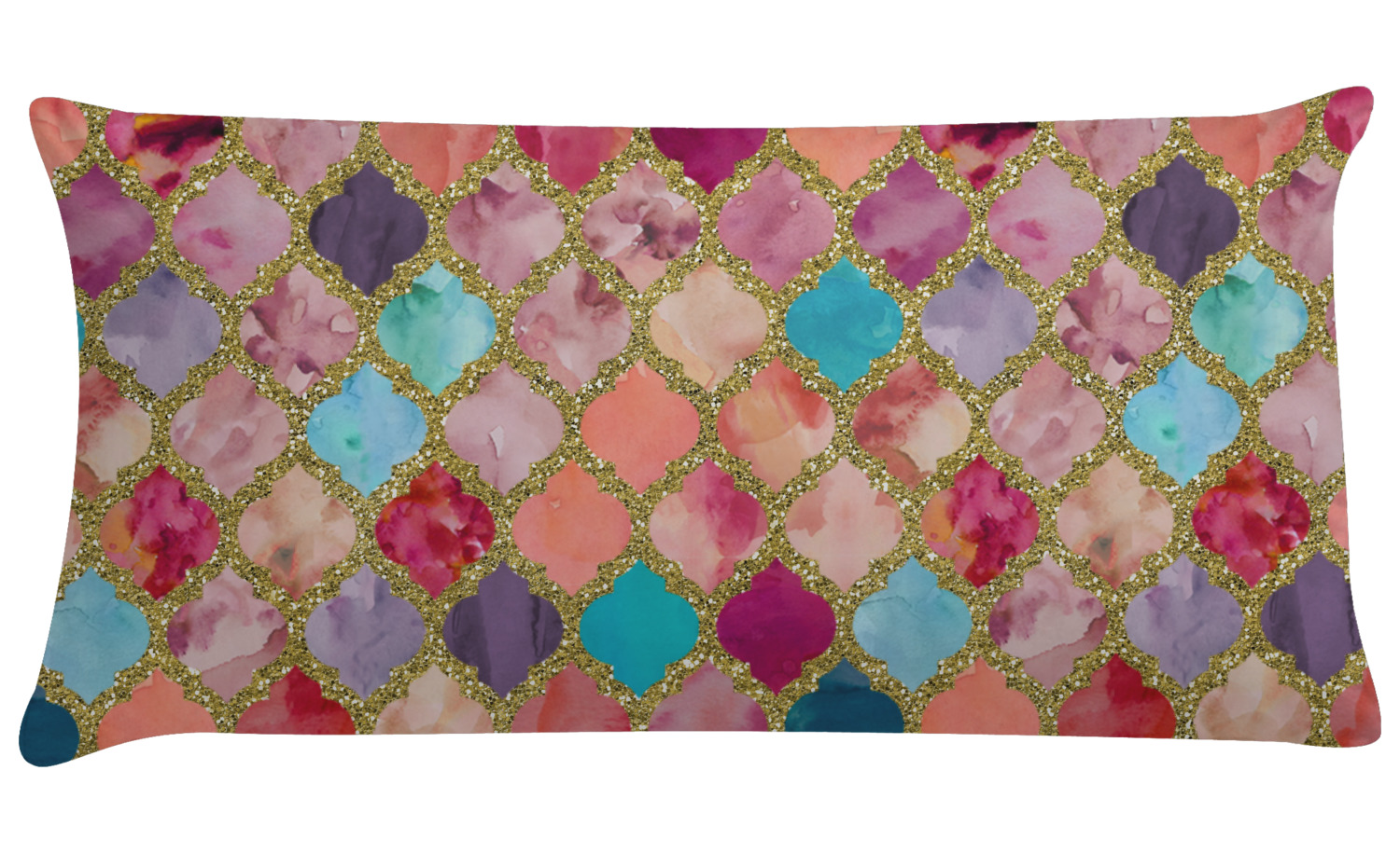 This design is simply the glitter moroccan pattern. The glitter outlining the pattern is a sparkling looking gold. The inside of the moroccan pattern is a watercolor texture with pinks, purples, teals, peaches, and blues. The coordinating design has a fun name and initial in the beautiful gold color.