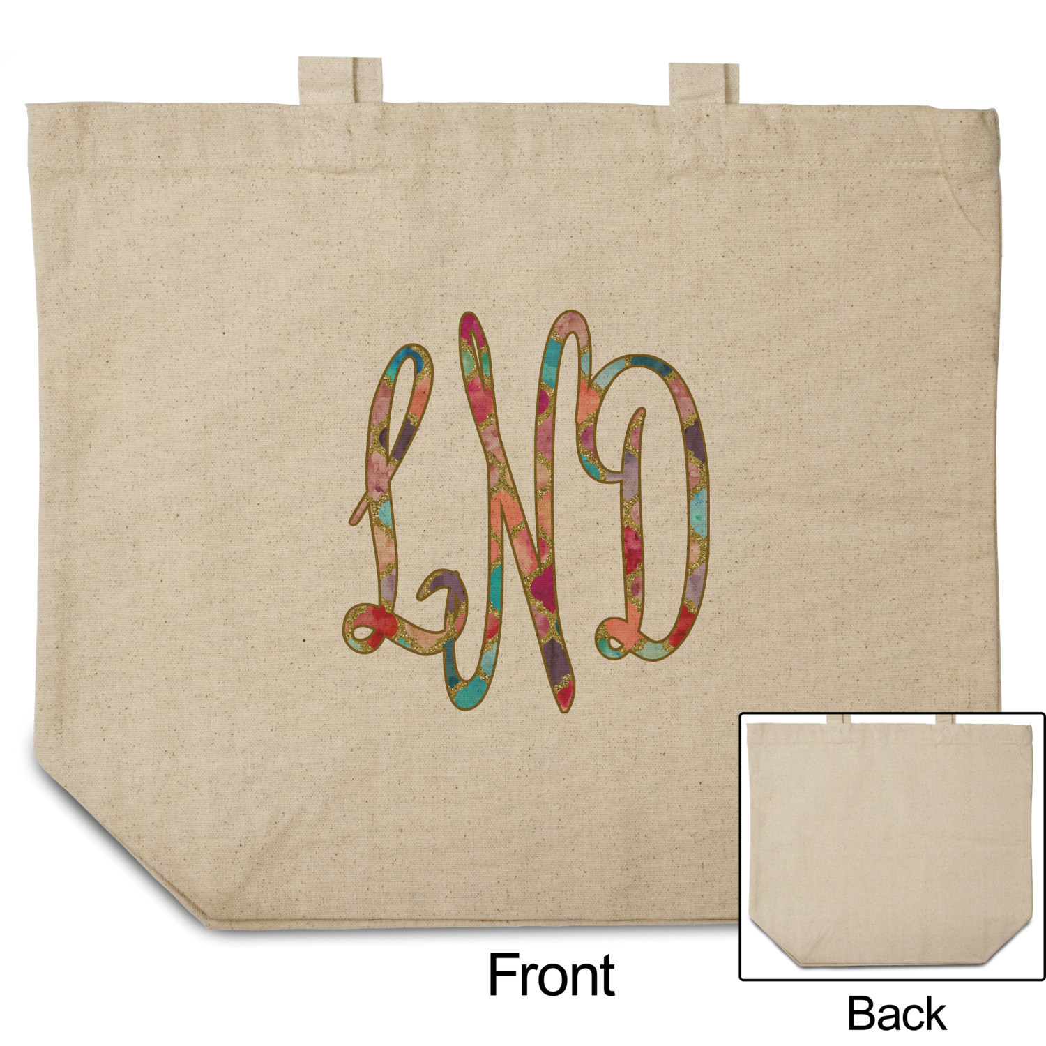 These cotton totes are washable and easy to care for, and they can be folded flat for storage. Your artwork, logo, or photo is printed in full color directly on the cotton tote in the front.