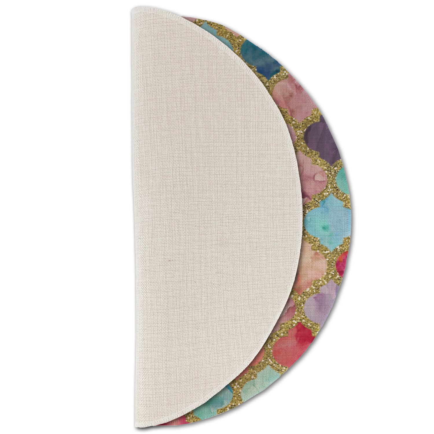 This design is simply the glitter moroccan pattern. The glitter outlining the pattern is a sparkling looking gold. The inside of the moroccan pattern is a watercolor texture with pinks, purples, teals, peaches, and blues. The coordinating design has a fun name and initial in the beautiful gold color.