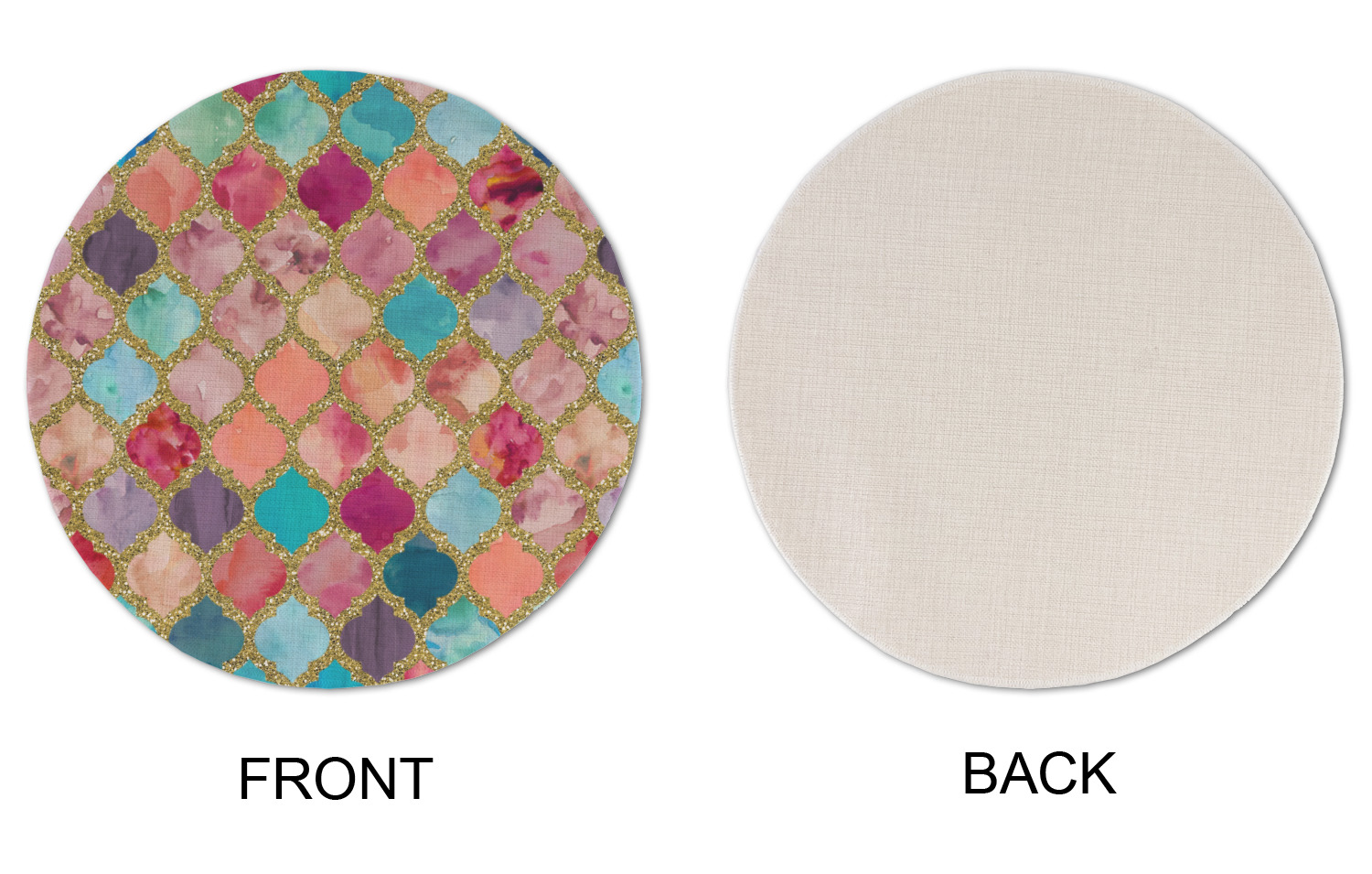 This design is simply the glitter moroccan pattern. The glitter outlining the pattern is a sparkling looking gold. The inside of the moroccan pattern is a watercolor texture with pinks, purples, teals, peaches, and blues. The coordinating design has a fun name and initial in the beautiful gold color.