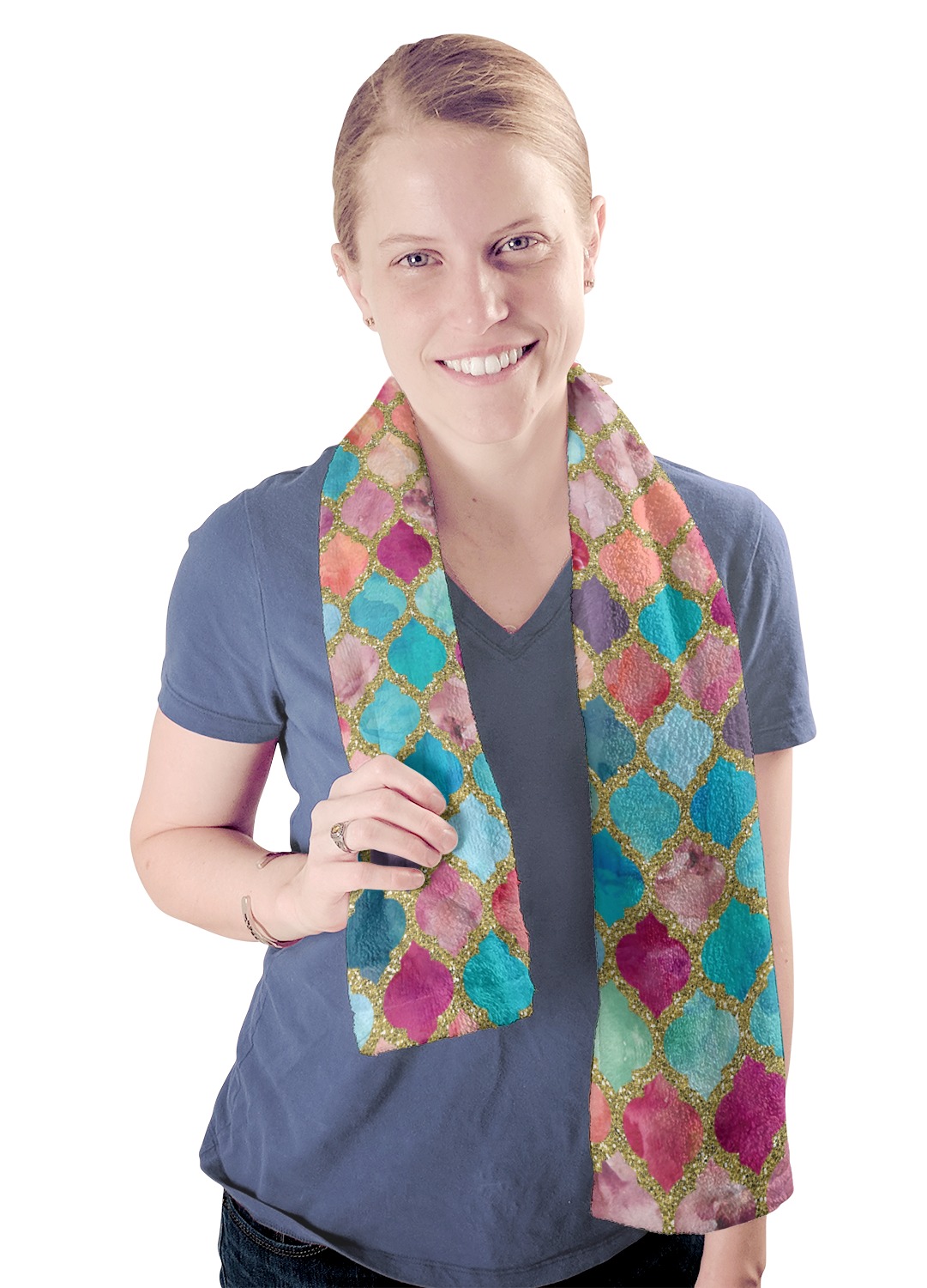 These towels are 44" x 12", which are the perfect size for hanging around your neck on the treadmill or wiping your brow after a hard workout. They are full-print towels with your very own design printed right on the front! They are perfect for soaking up moisture and are quite soft against your skin.