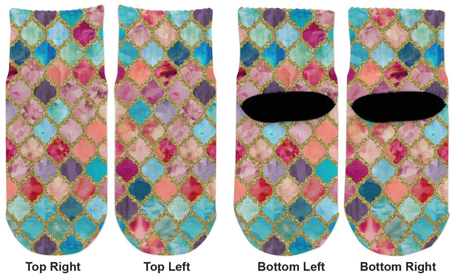 This design is simply the glitter moroccan pattern. The glitter outlining the pattern is a sparkling looking gold. The inside of the moroccan pattern is a watercolor texture with pinks, purples, teals, peaches, and blues. The coordinating design has a fun name and initial in the beautiful gold color.