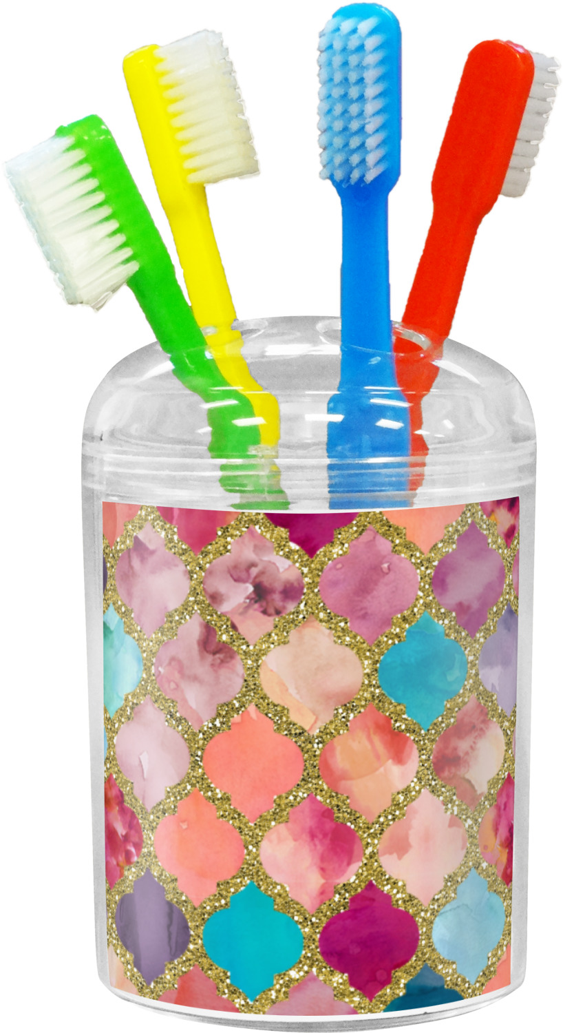 These bathroom toothbrush holders are built from acrylic, making them durable enough to withstand daily use. The stand itself is made of three different pieces: an inner cup, a base, and the lid featuring the four holes. Each toothbrush stand has a twist-off lid for easy cleaning and also features 4 holes to accommodate 4 toothbrushes. While designed for toothbrushes, these holders are multifunctional, and can be used for makeup brushes, paintbrushes, and more! Your customization is displayed on the side of this product on a fine-quality, vinyl insert.