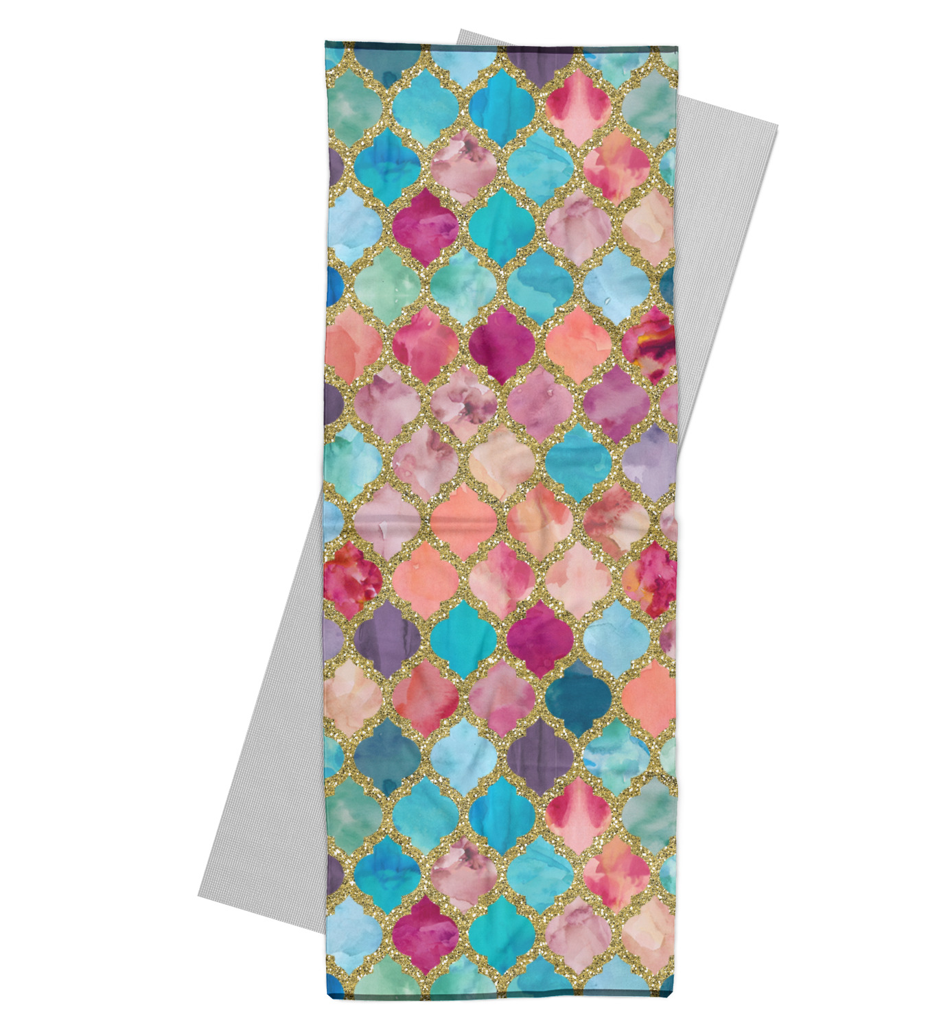 This gorgeous yoga mat towel is printed with your own design on the front with a grey colored back. They are the perfect thing to take with you to a yoga class where you use community mats. No need to worry about someone else's sweat left behind! They also give you a little extra grip on your mat, especially for when you do a hot yoga workout! They measure at approximately 24" W x 68" H. They are the perfect thing for your regular yoga classes or workouts.