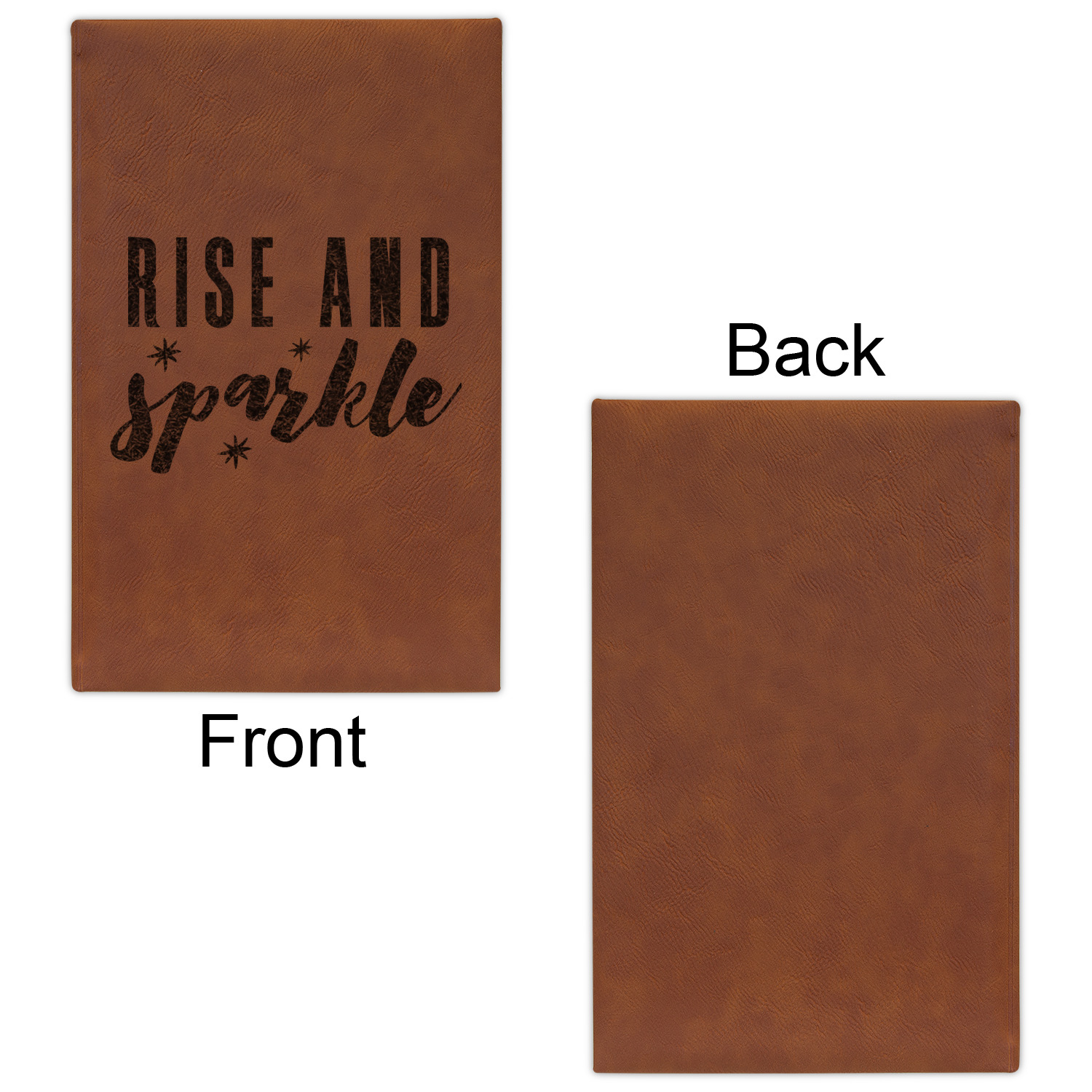 The faux leather covers are a rich cognac / rawhide color and can be customized with your design. From a simple name or monogram or a logo to a detailed mandala - the choice for customization & personalization is truly yours. Customize one of our designs or upload your own.